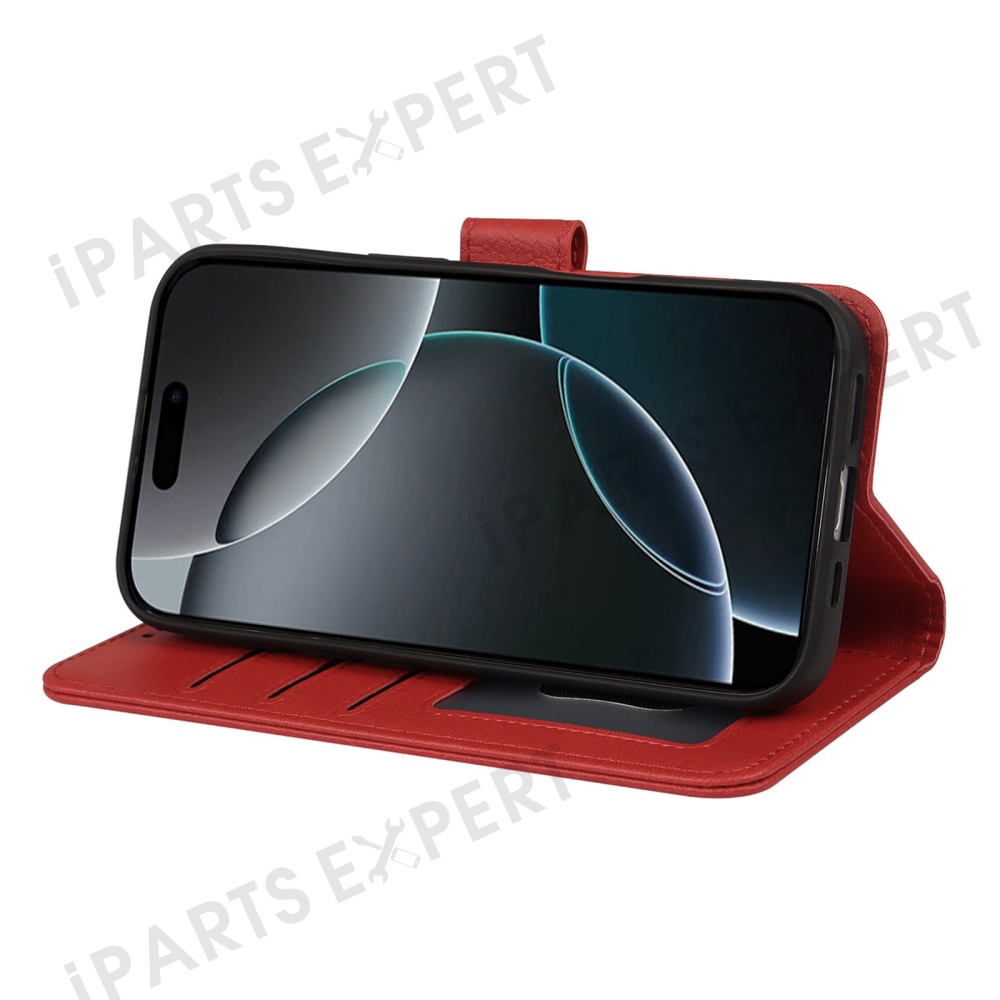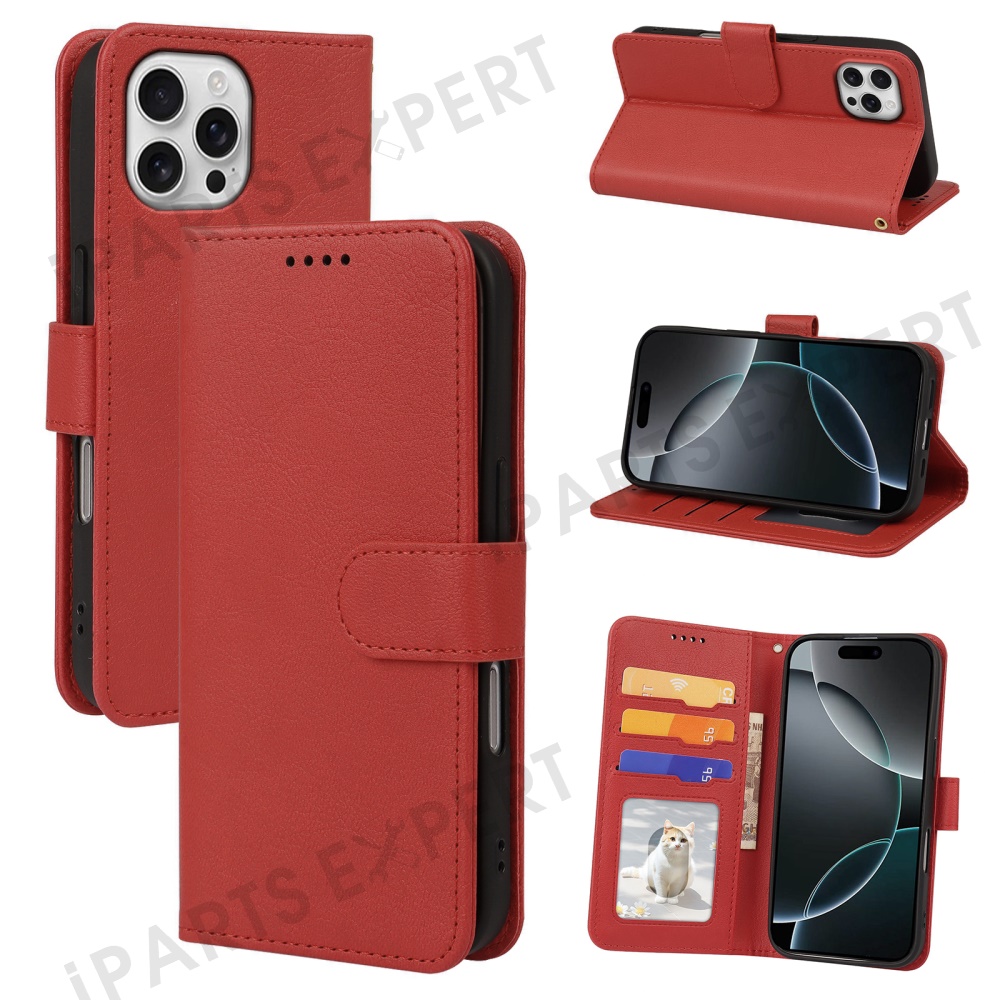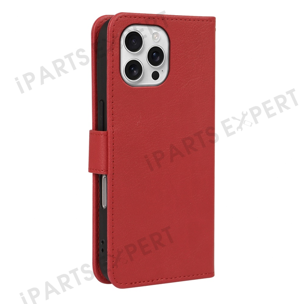 For iPhone 16 Pro Leather Case Wallet Stand Magnetic Closure Phone Cover - Red