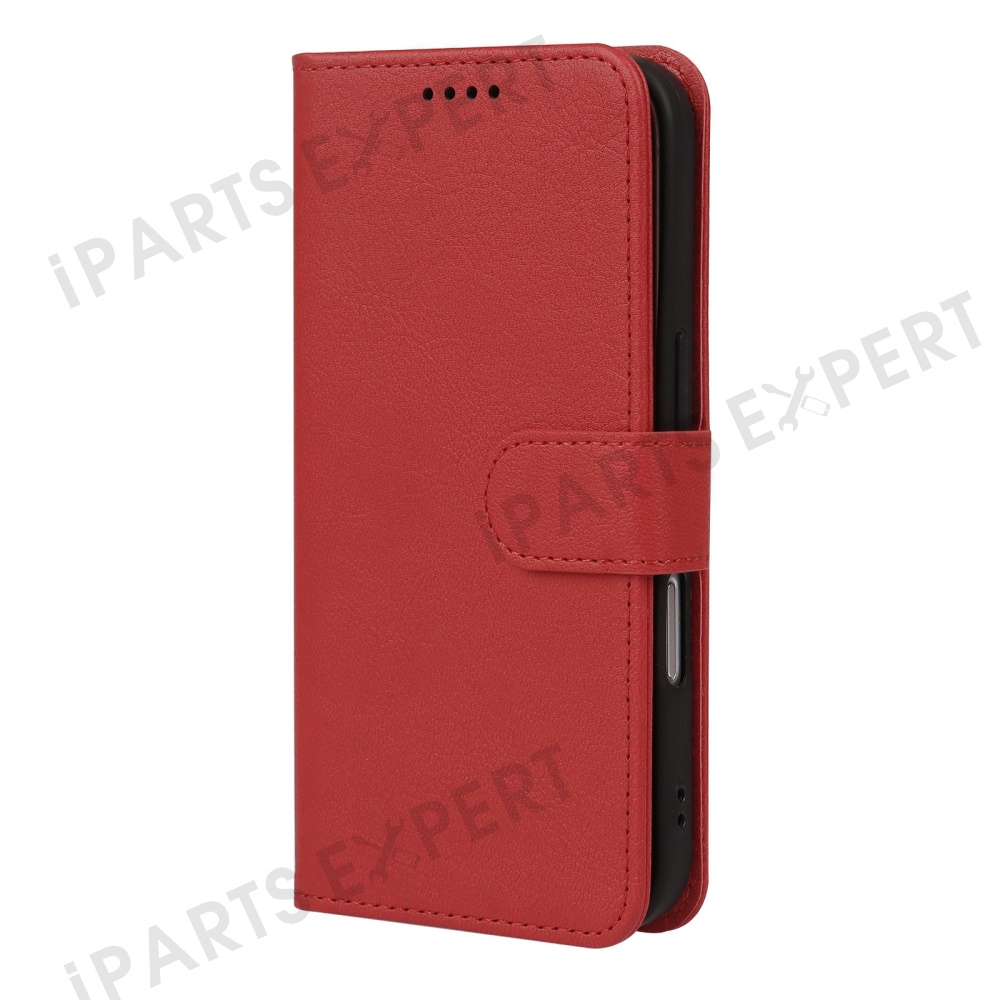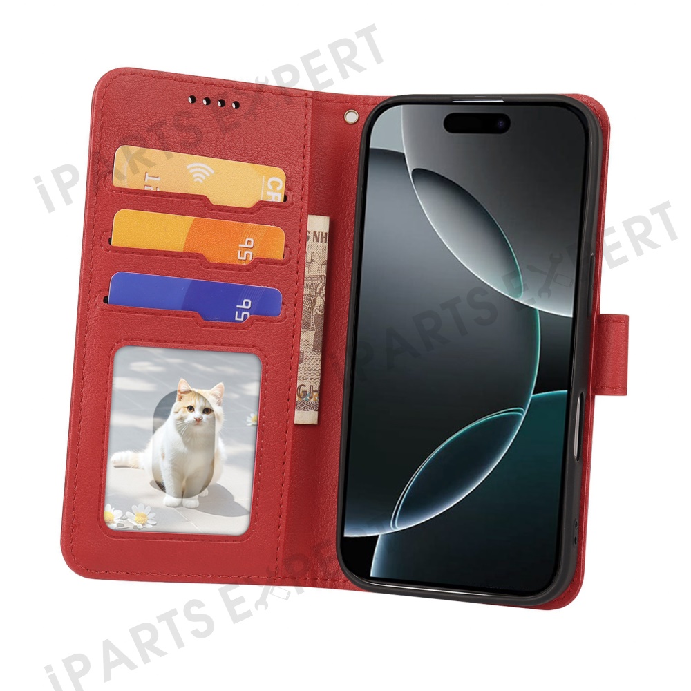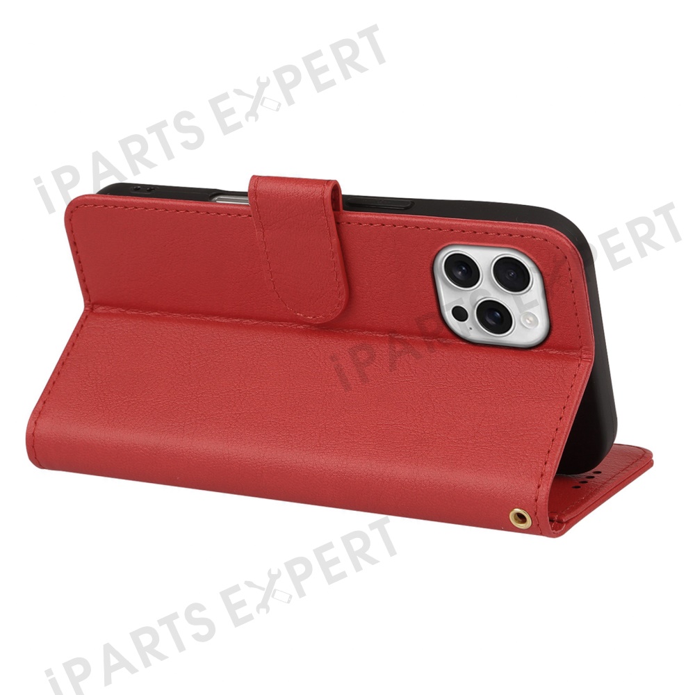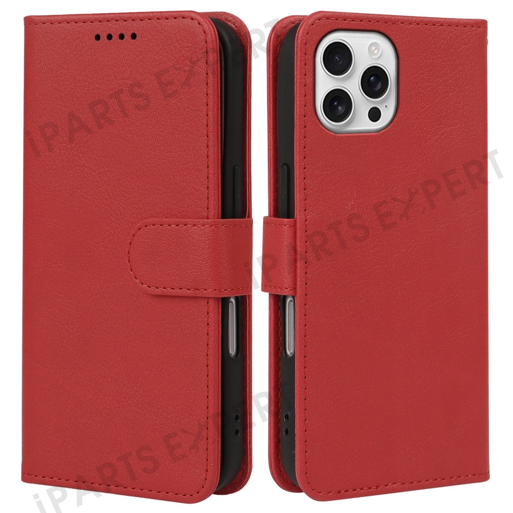 For iPhone 16 Pro Leather Case Wallet Stand Magnetic Closure Phone Cover - Red