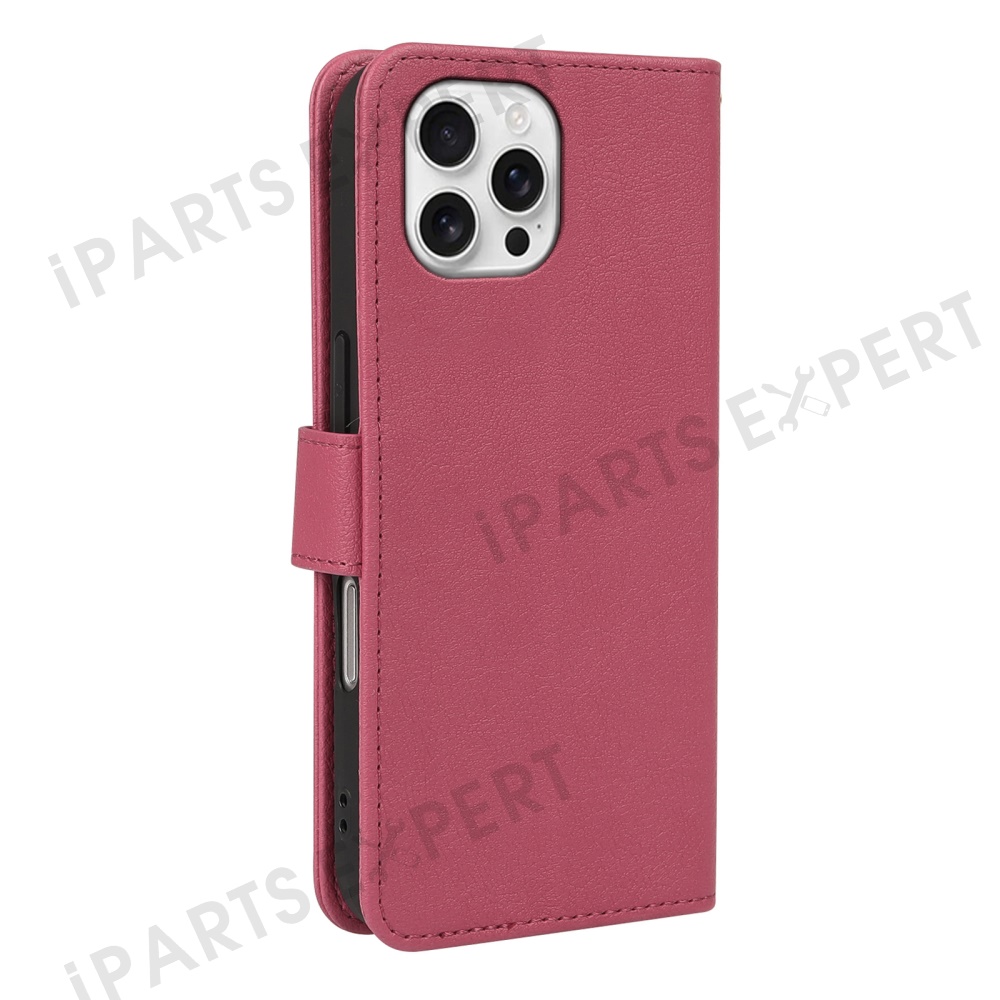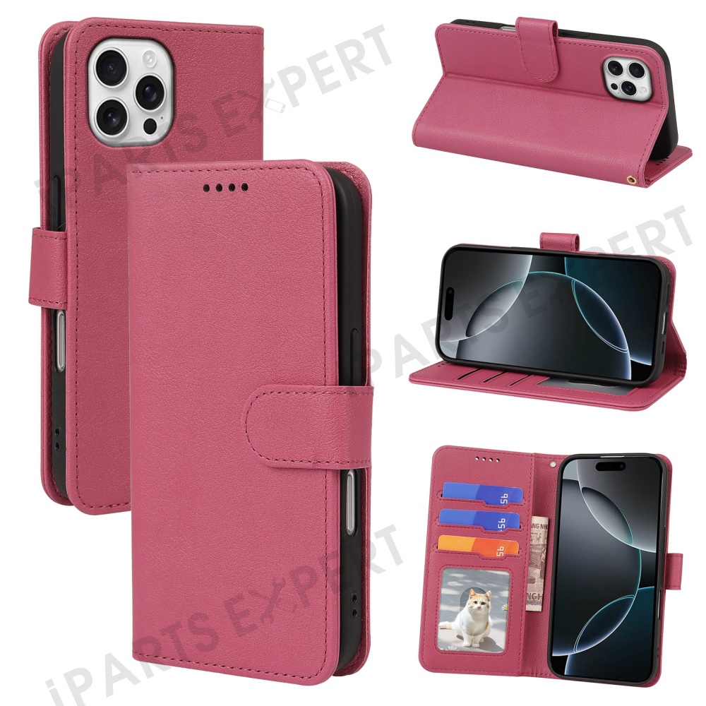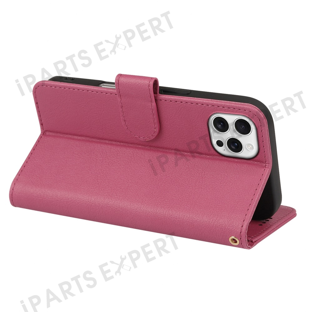 For iPhone 16 Pro Leather Case Wallet Stand Magnetic Closure Phone Cover - Rose