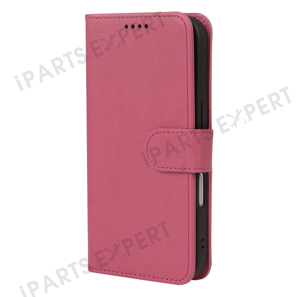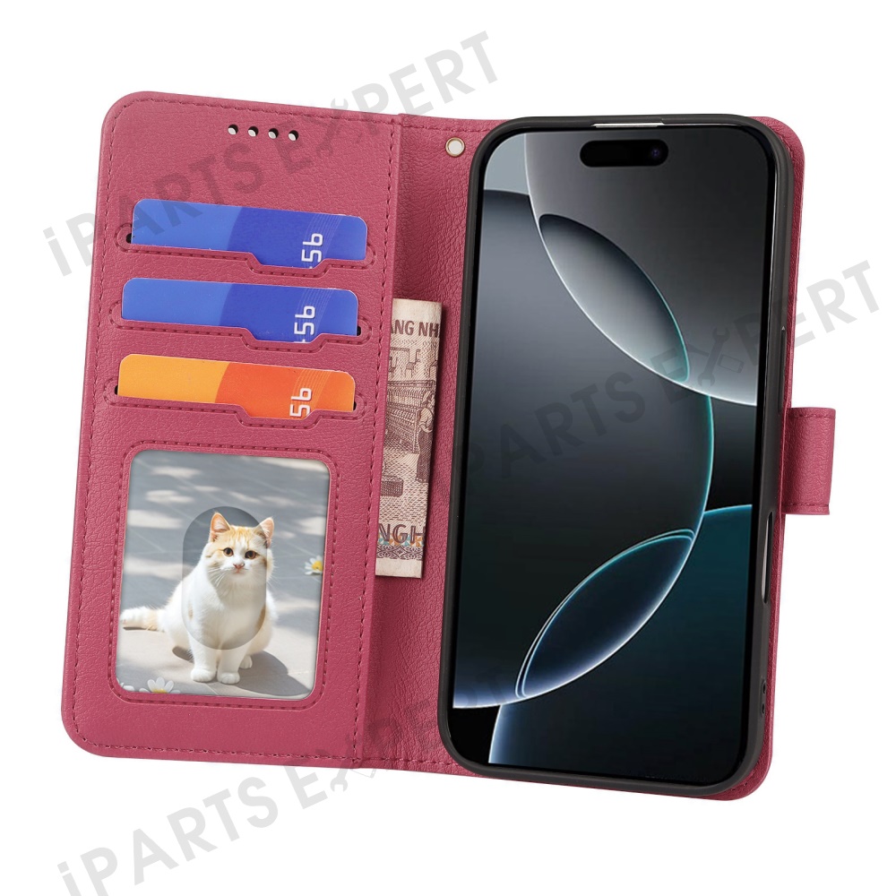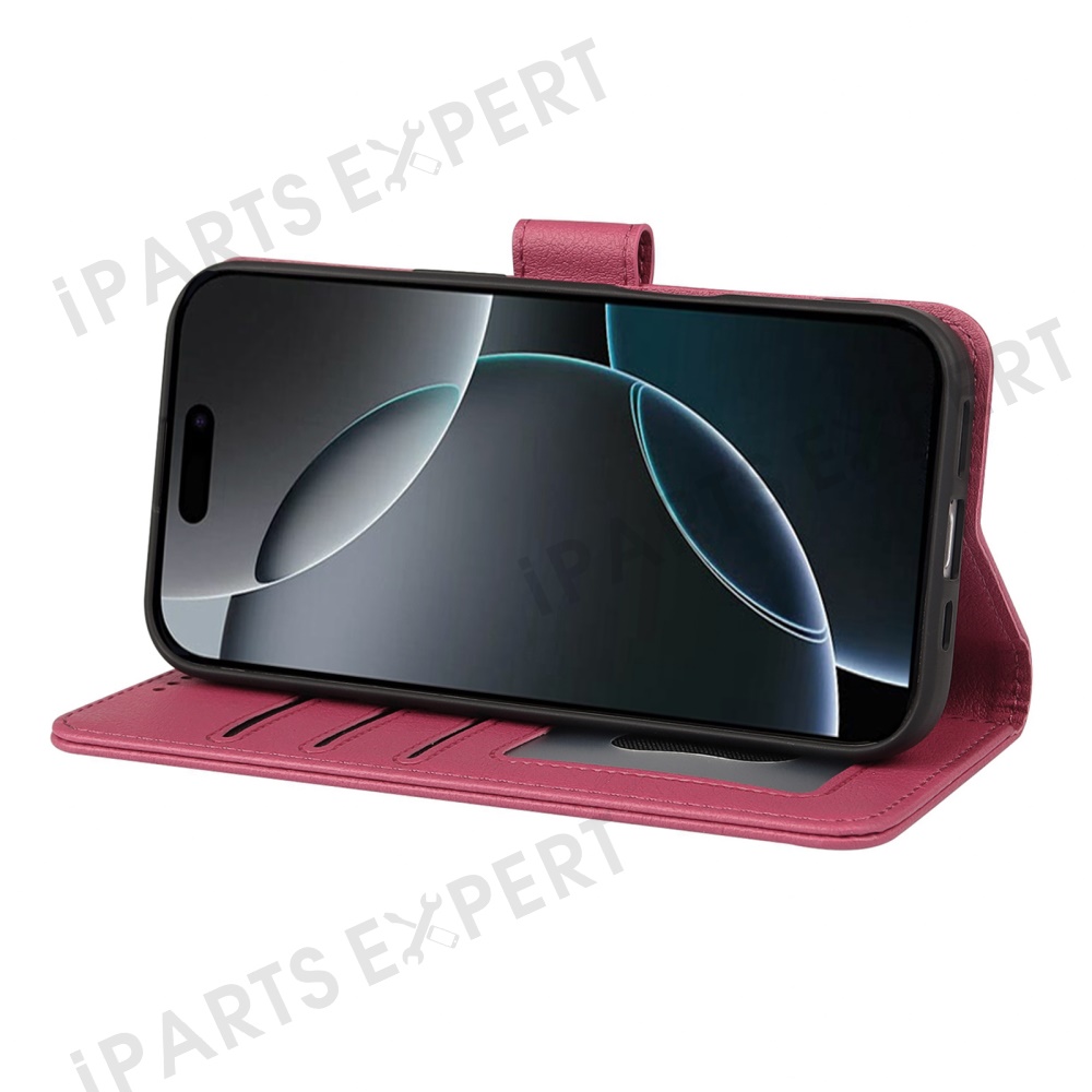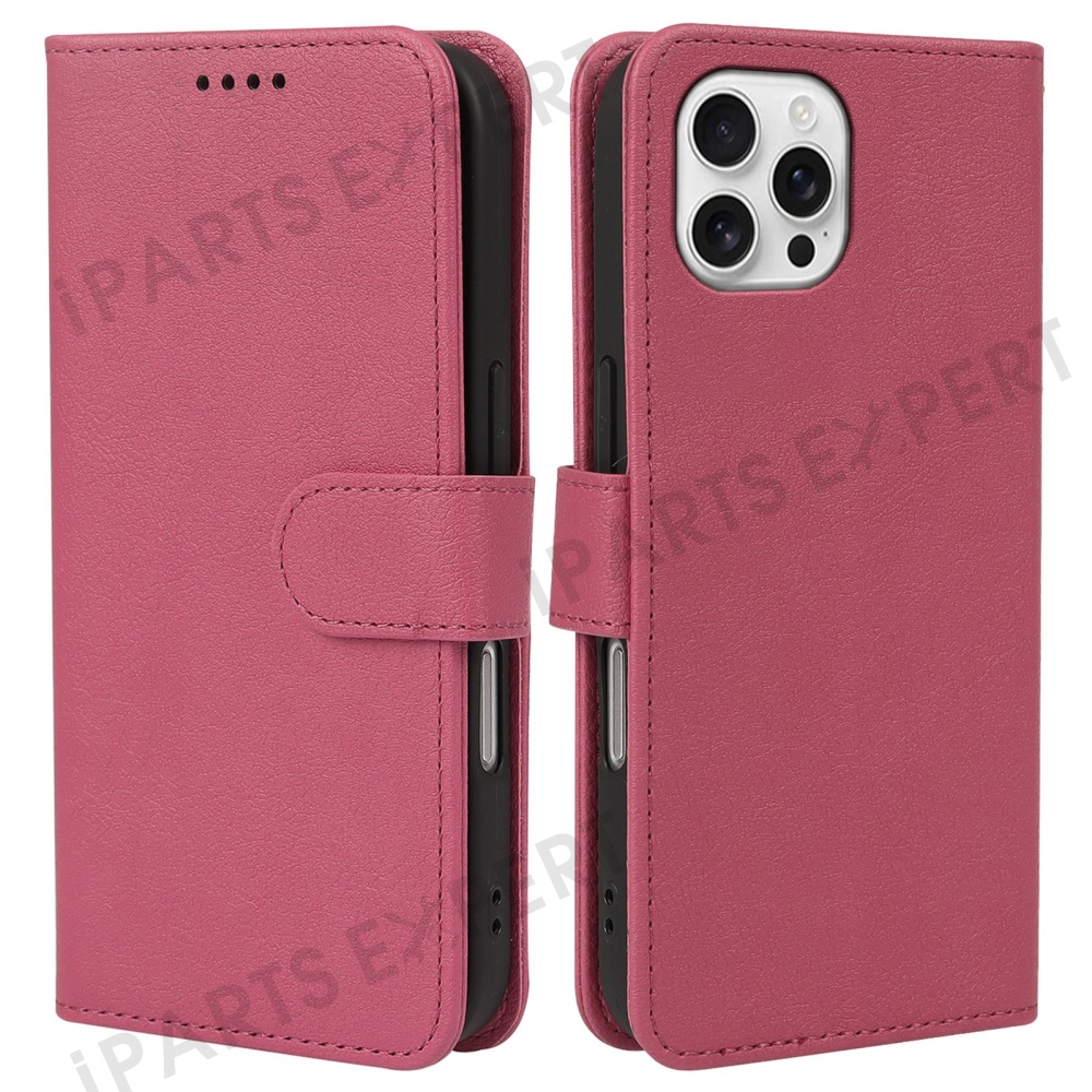 For iPhone 16 Pro Leather Case Wallet Stand Magnetic Closure Phone Cover - Rose