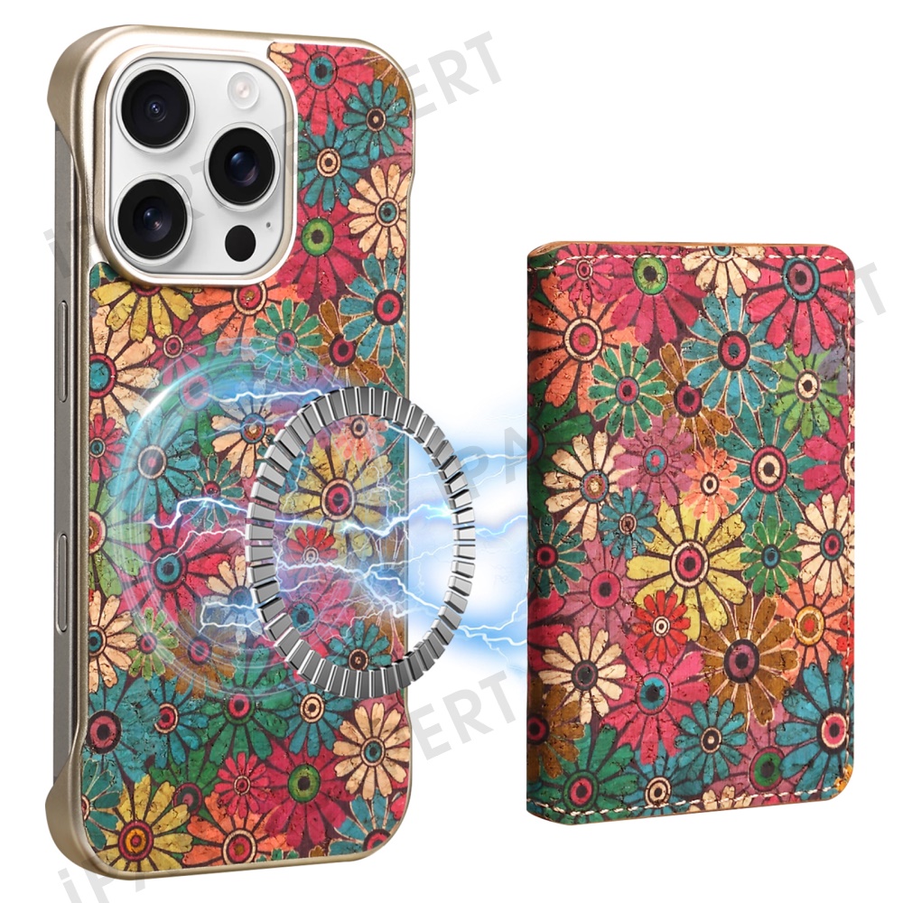 For iPhone 16 Pro Magnetic Case Compatible with MagSafe Pattern Print PU + PC Phone Cover with Card Holder - Daisy
