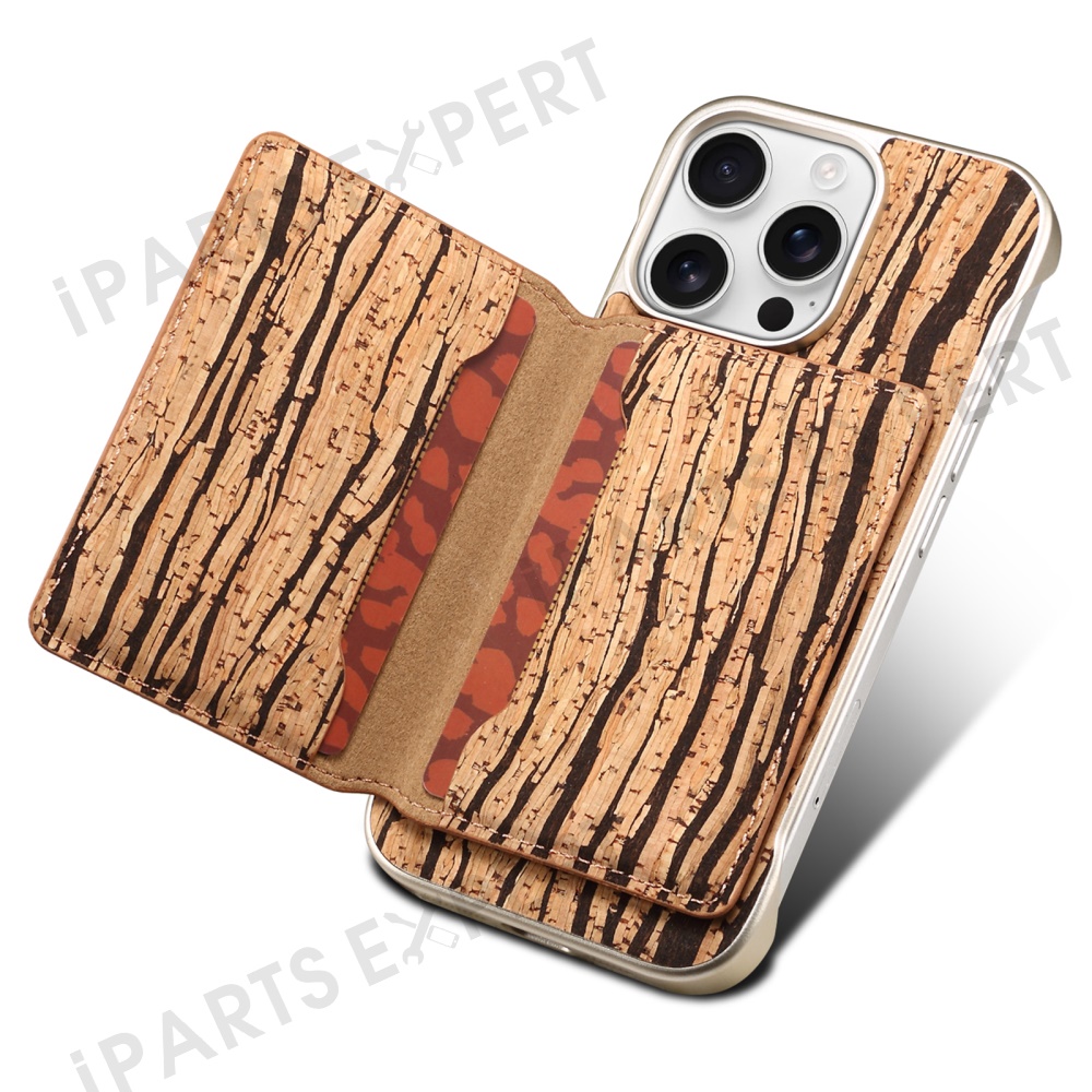 For iPhone 16 Pro Magnetic Case Compatible with MagSafe Pattern Print PU + PC Phone Cover with Card Holder - Wood Grain Yellow