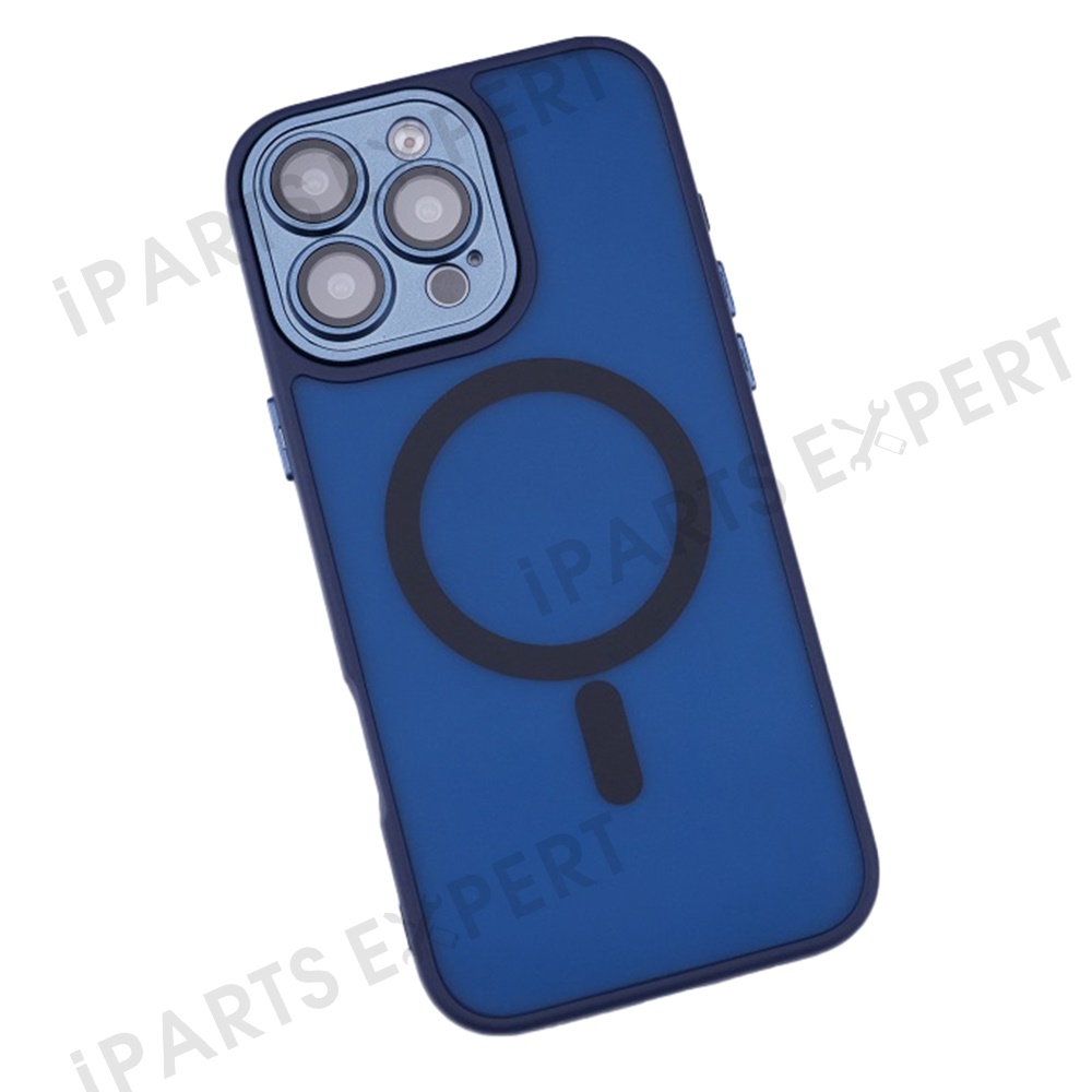 For iPhone 16 Pro Magnetic Case with Lens Film / Detachable Lens Frame Hybrid Phone Back Cover - Navy Blue