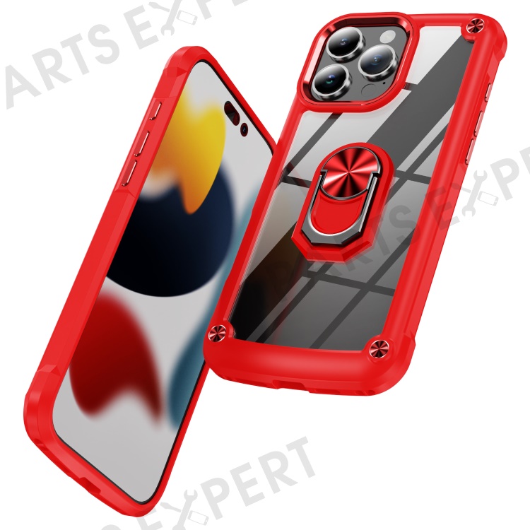 For iPhone 16 Pro Max Case Alloy Lens Frame PC + TPU Kickstand Phone Back Cover - Red