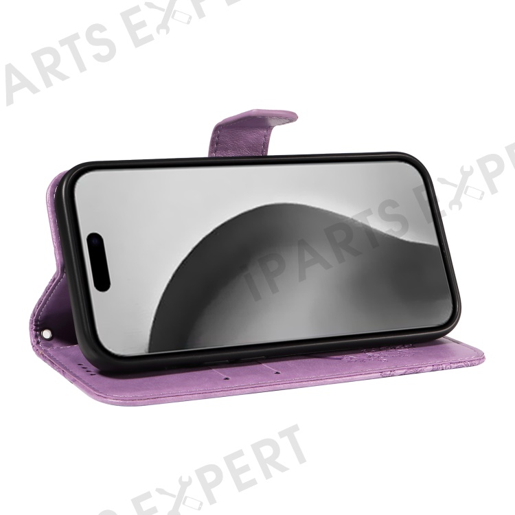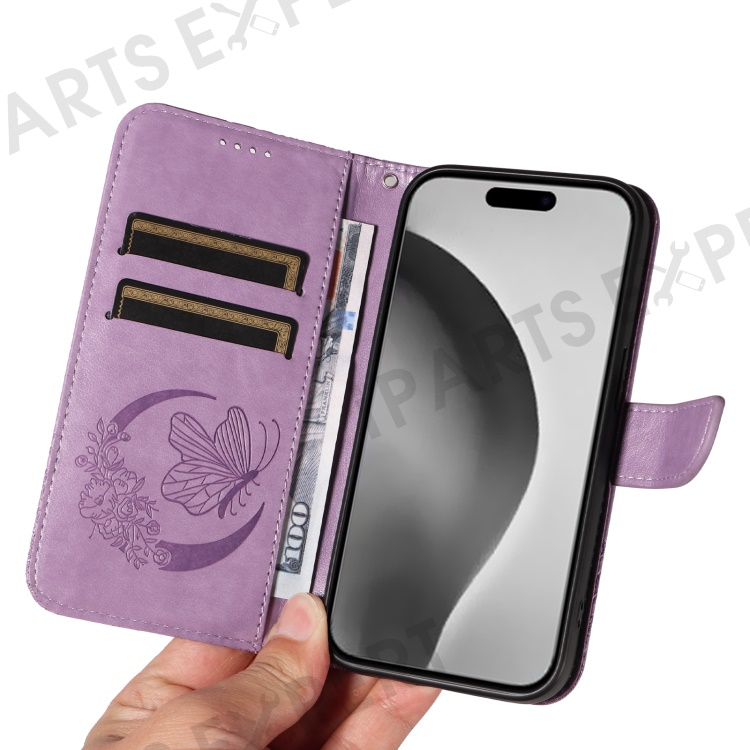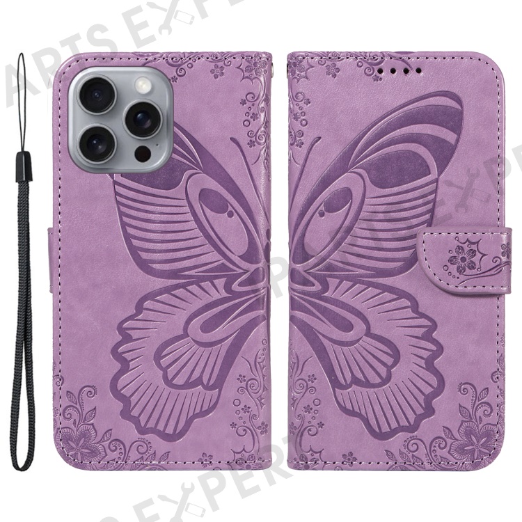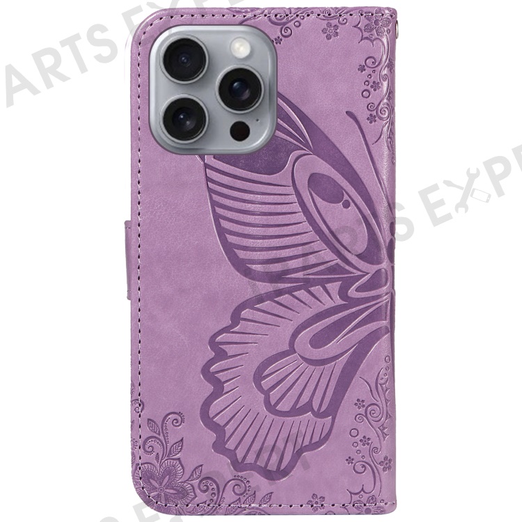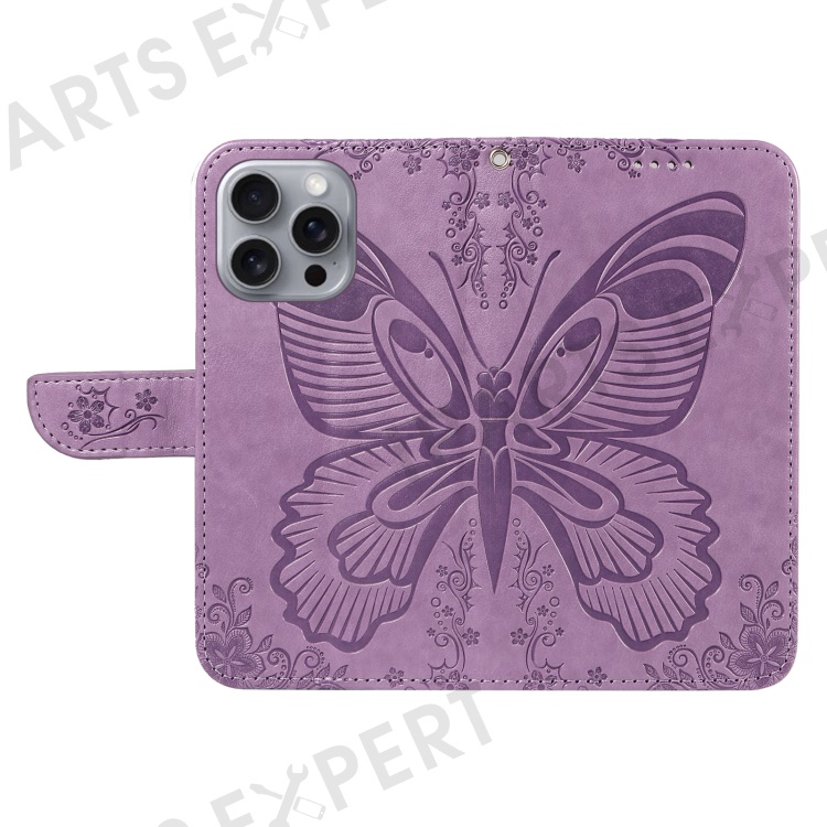 For iPhone 16 Pro Max Case Butterfly Imprint Anti-Shock Leather Phone Cover - Light Purple