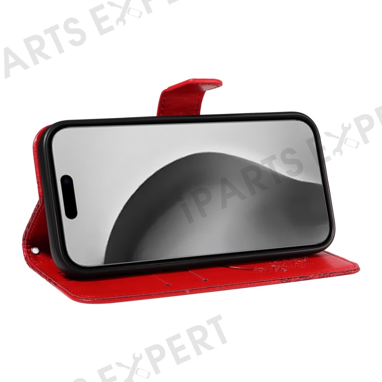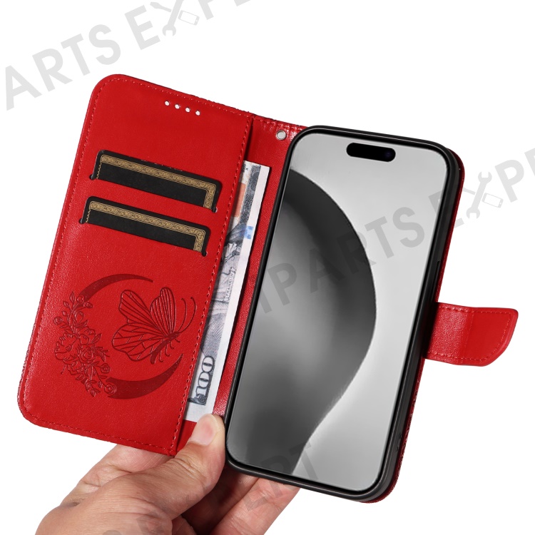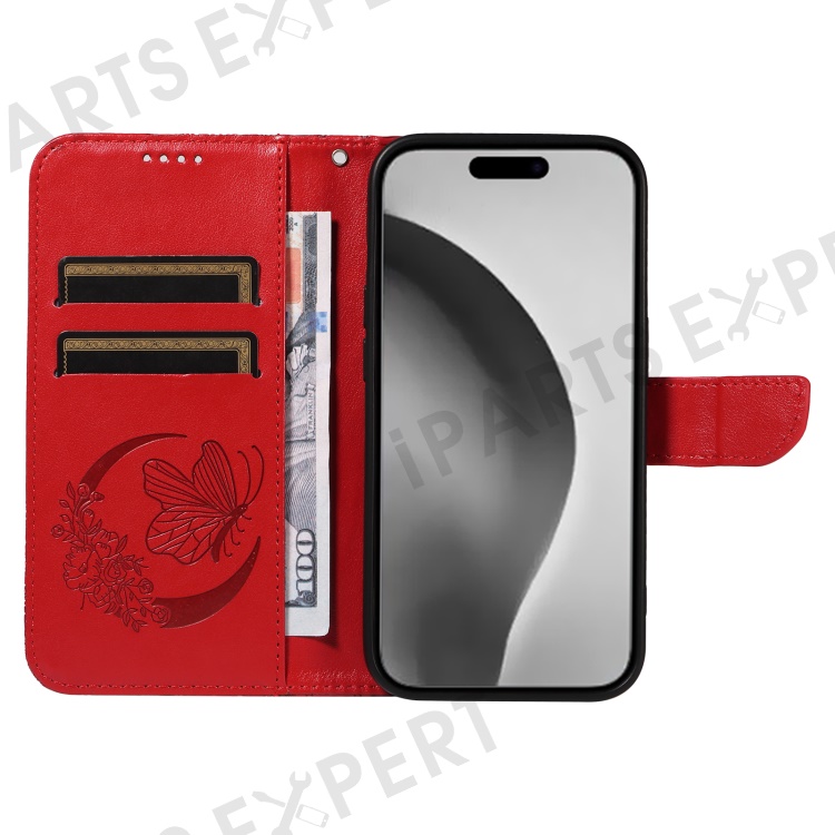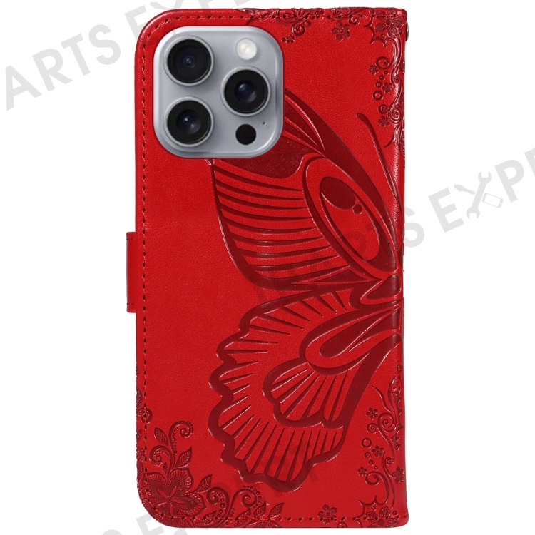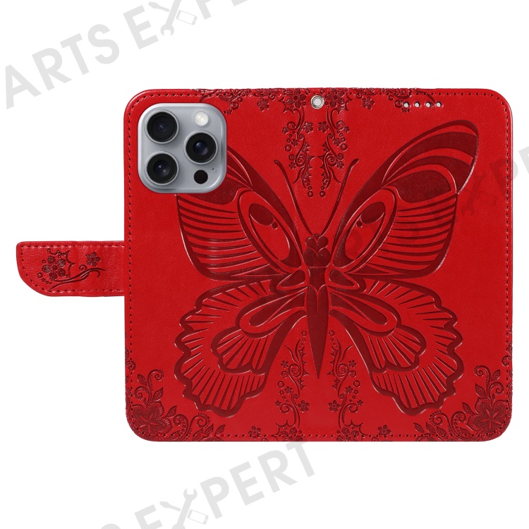 For iPhone 16 Pro Max Case Butterfly Imprint Anti-Shock Leather Phone Cover - Red