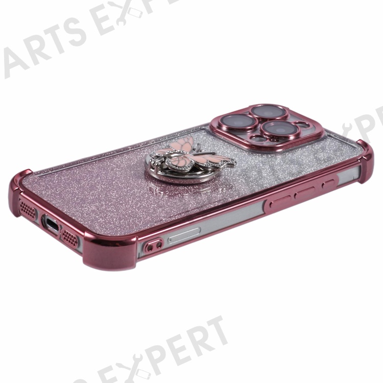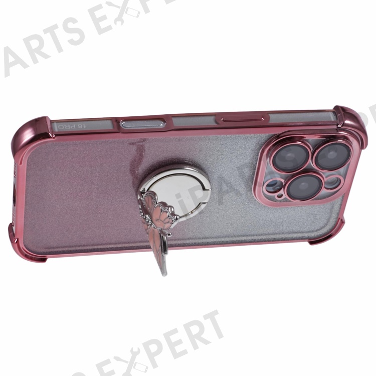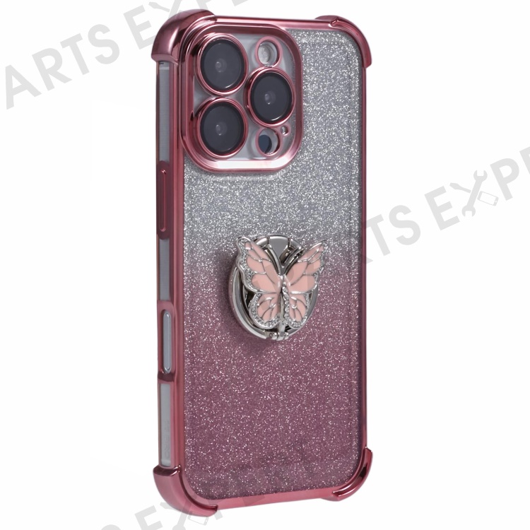 For iPhone 16 Pro Max Case Butterfly Kickstand Glitter TPU Shockproof Phone Cover - Pink