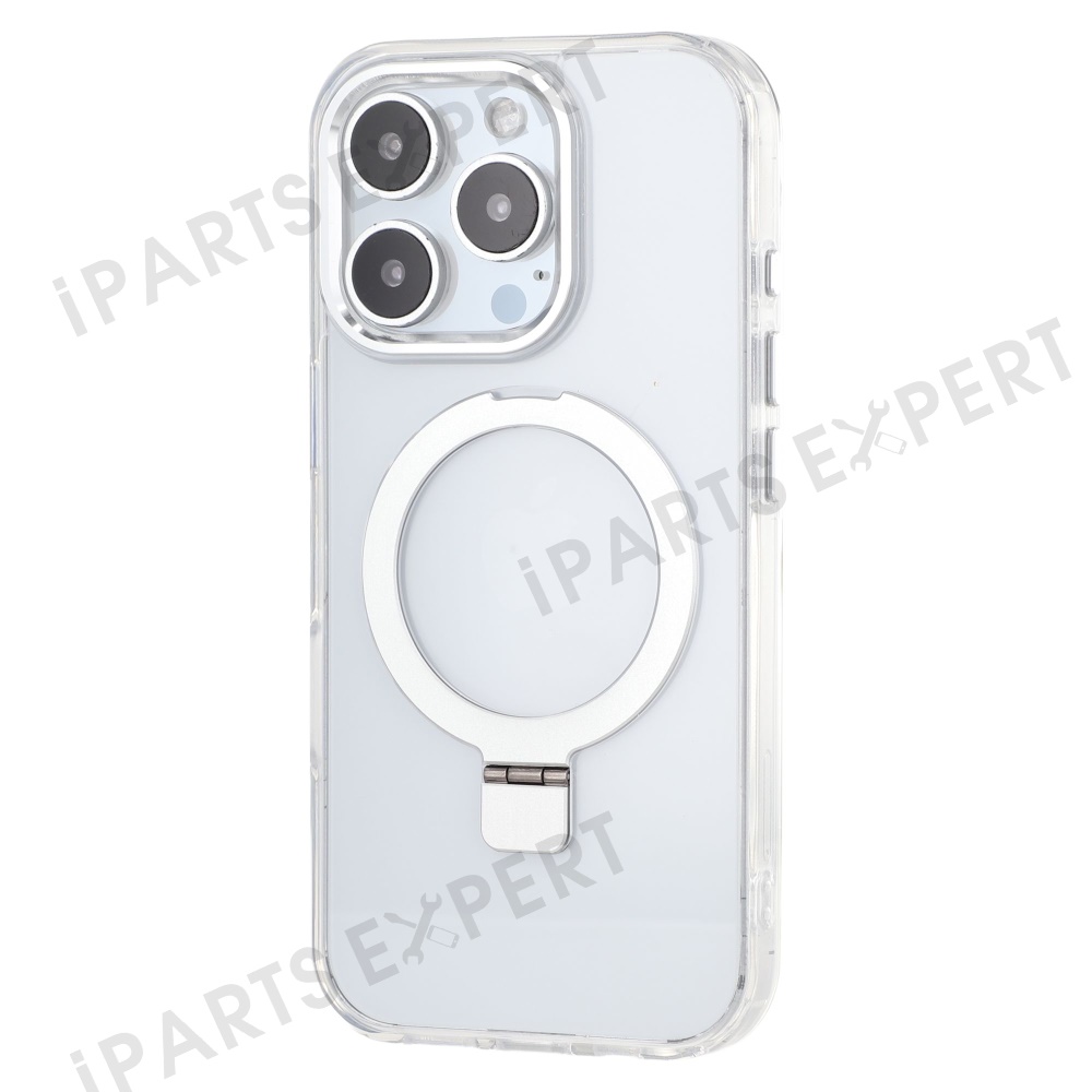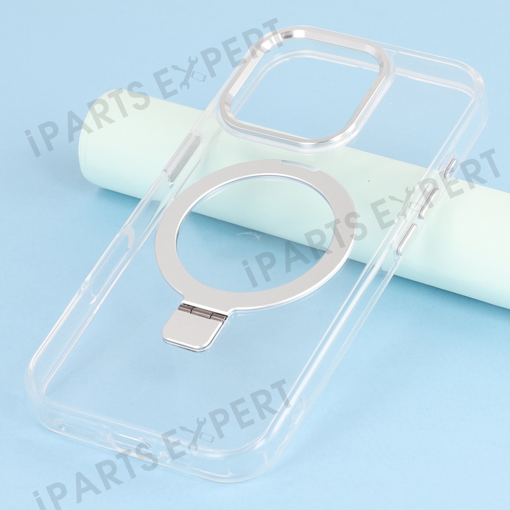 For iPhone 16 Pro Max Case Compatible with MagSafe Kickstand TPU + PC Clear Phone Cover - Silver