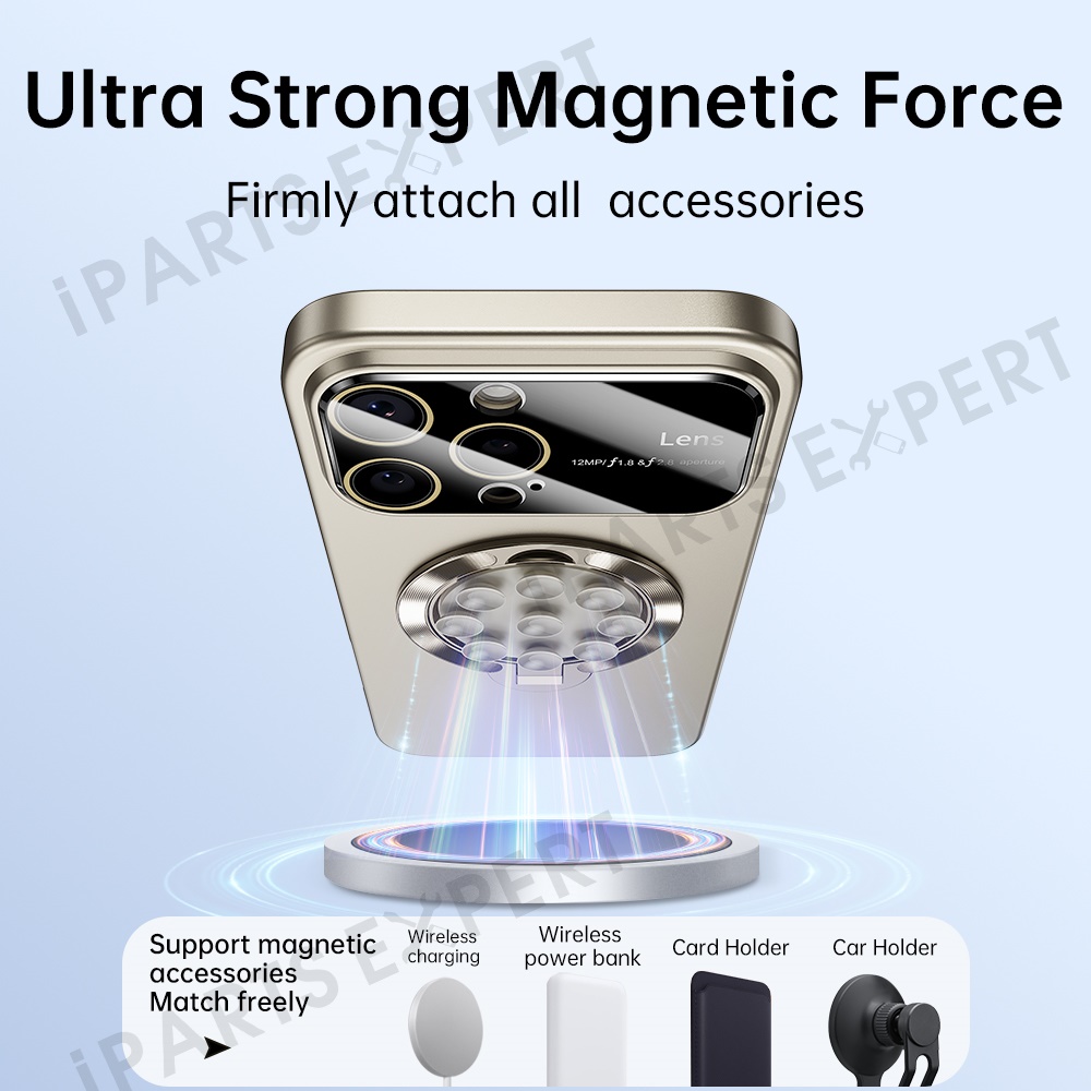 For iPhone 16 Pro Max Case Compatible with MagSafe Suction Cup Kickstand PC Phone Cover - Titanium