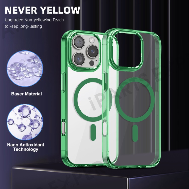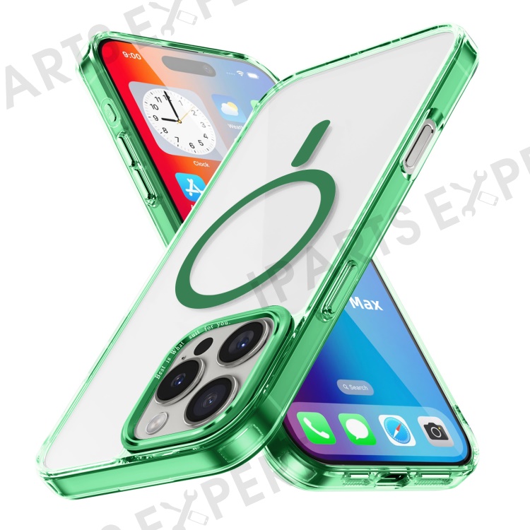 For iPhone 16 Pro Max Case Compatible with MagSafe TPU+PC Transparent Phone Cover - Green