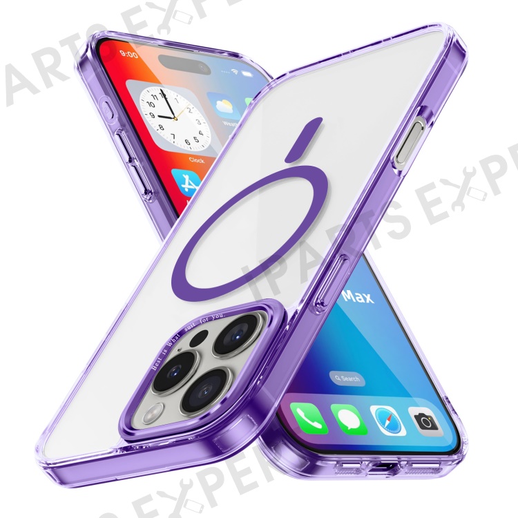 For iPhone 16 Pro Max Case Compatible with MagSafe TPU+PC Transparent Phone Cover - Purple