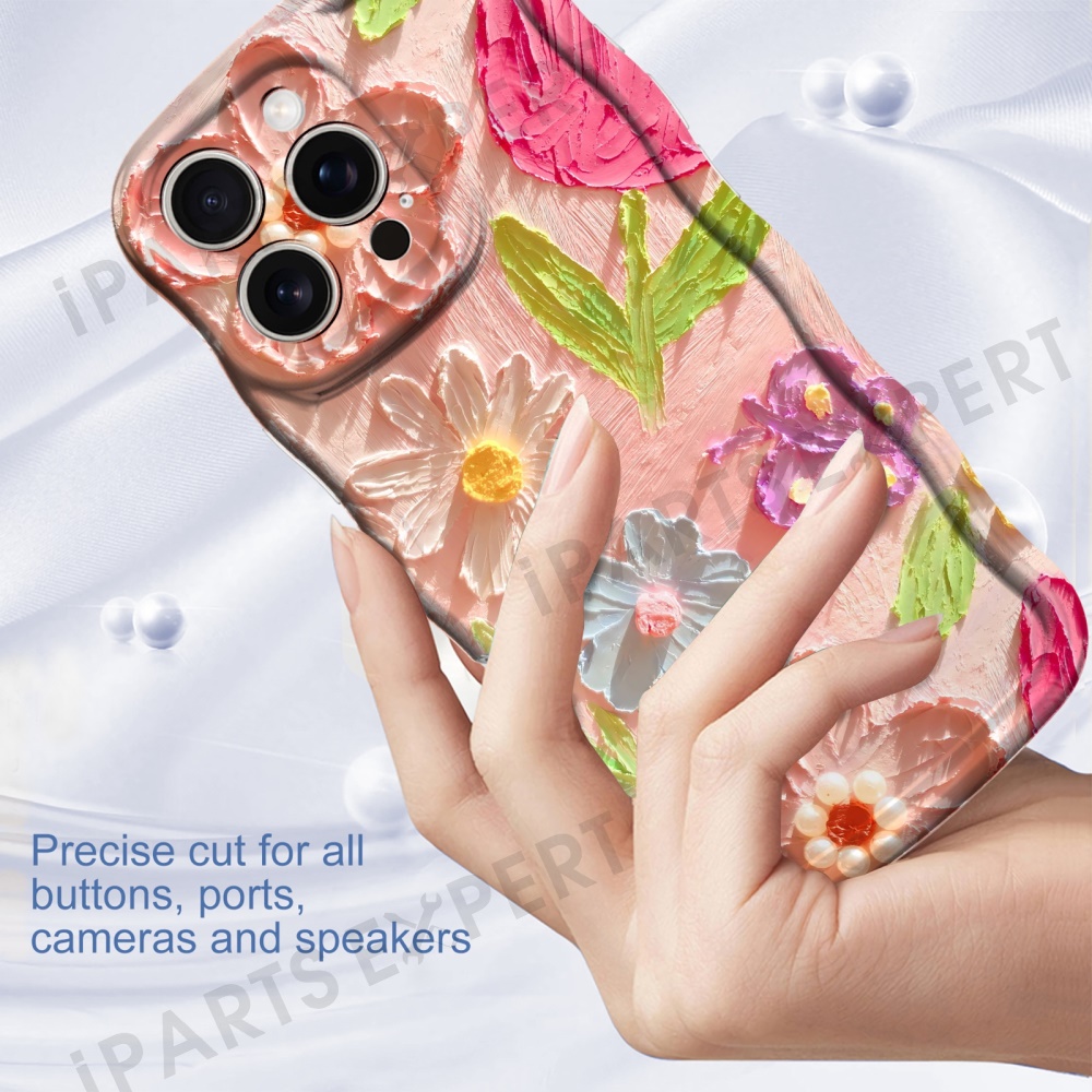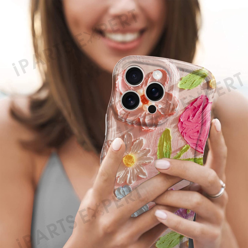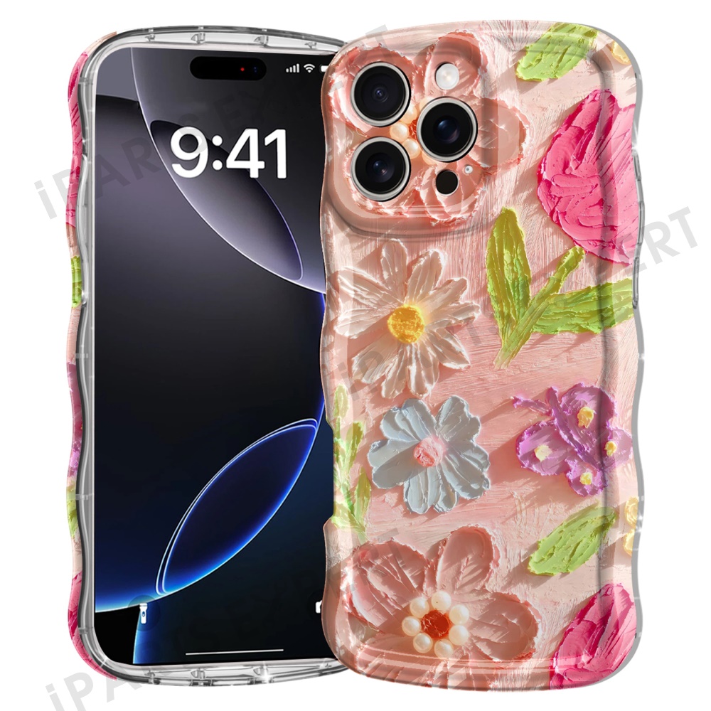 For iPhone 16 Pro Max Case Curly Wave Frame Floral IMD TPU Phone Cover - GWL10224