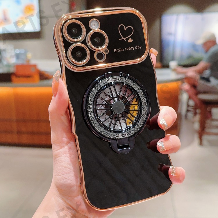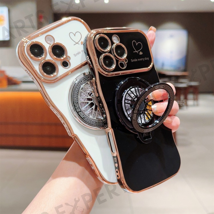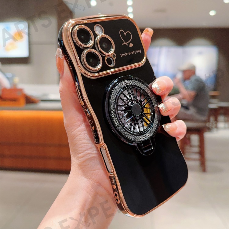 For iPhone 16 Pro Max Case Electroplating Gyro Design Kickstand Soft TPU Phone Cover - Black