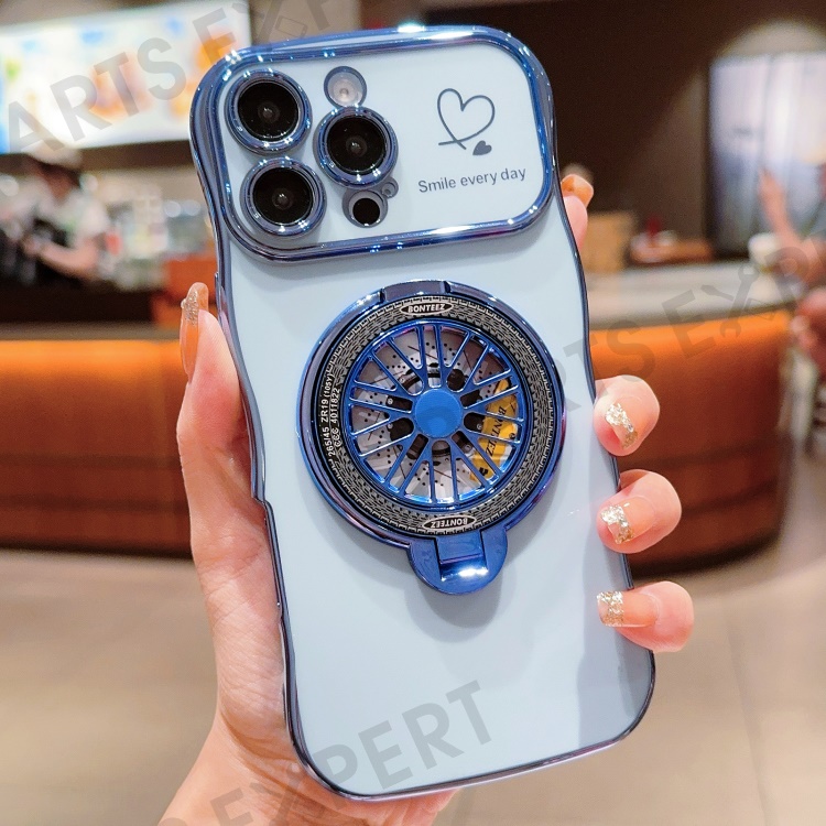 For iPhone 16 Pro Max Case Electroplating Gyro Design Kickstand Soft TPU Phone Cover - Blue