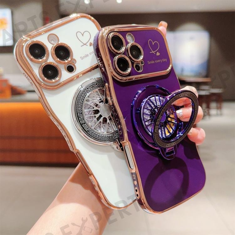For iPhone 16 Pro Max Case Electroplating Gyro Design Kickstand Soft TPU Phone Cover - Dark Purple