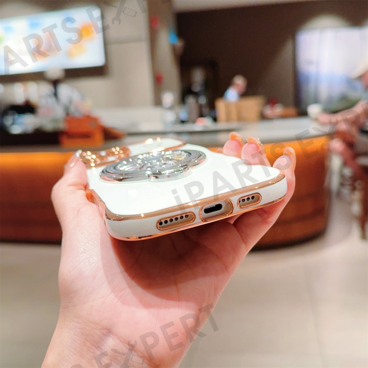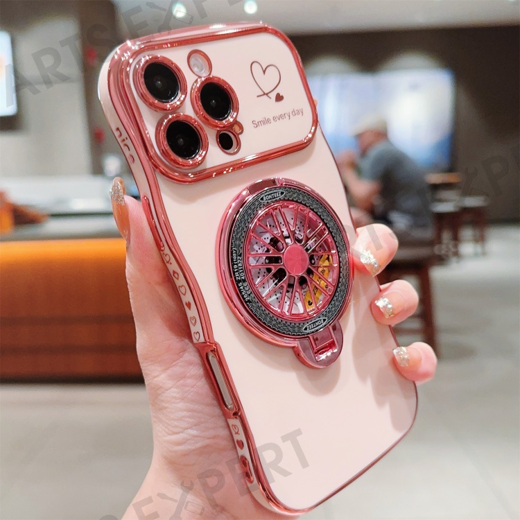 For iPhone 16 Pro Max Case Electroplating Gyro Design Kickstand Soft TPU Phone Cover - Pink