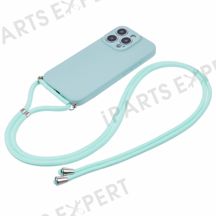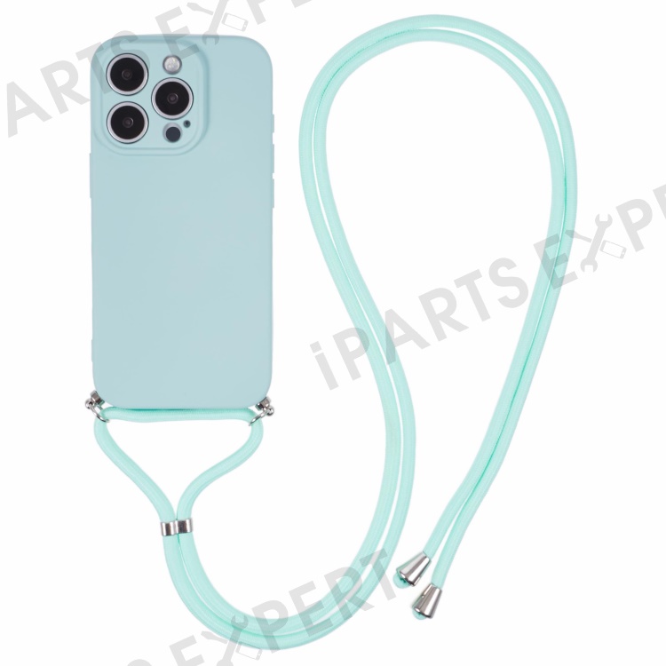 For iPhone 16 Pro Max Case Fiber Lining TPU Shockproof Phone Cover with Crossbody Lanyard - Baby Blue
