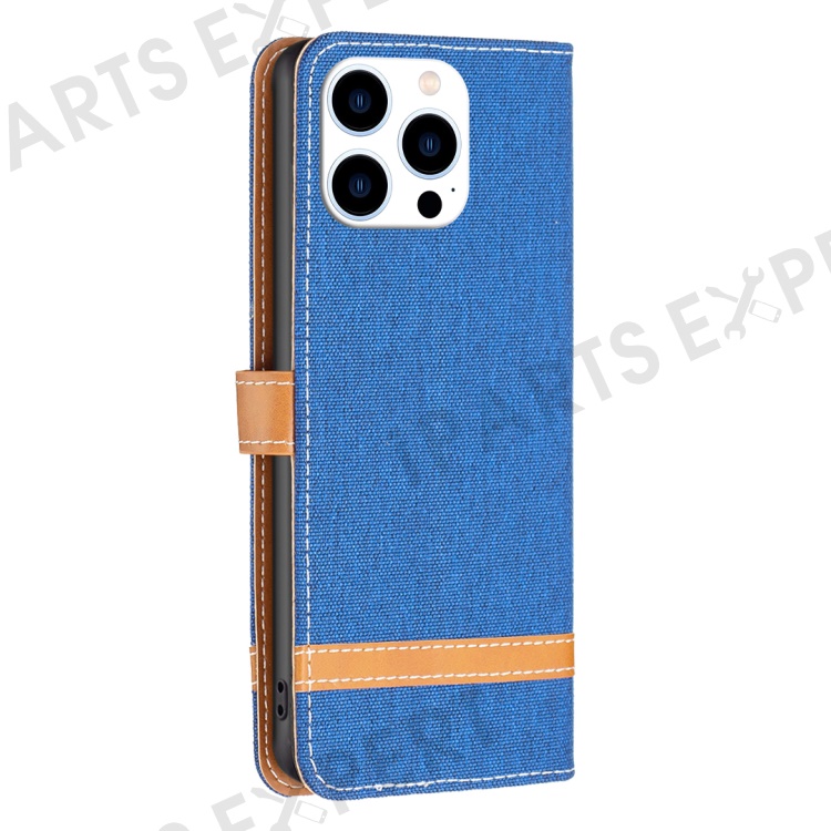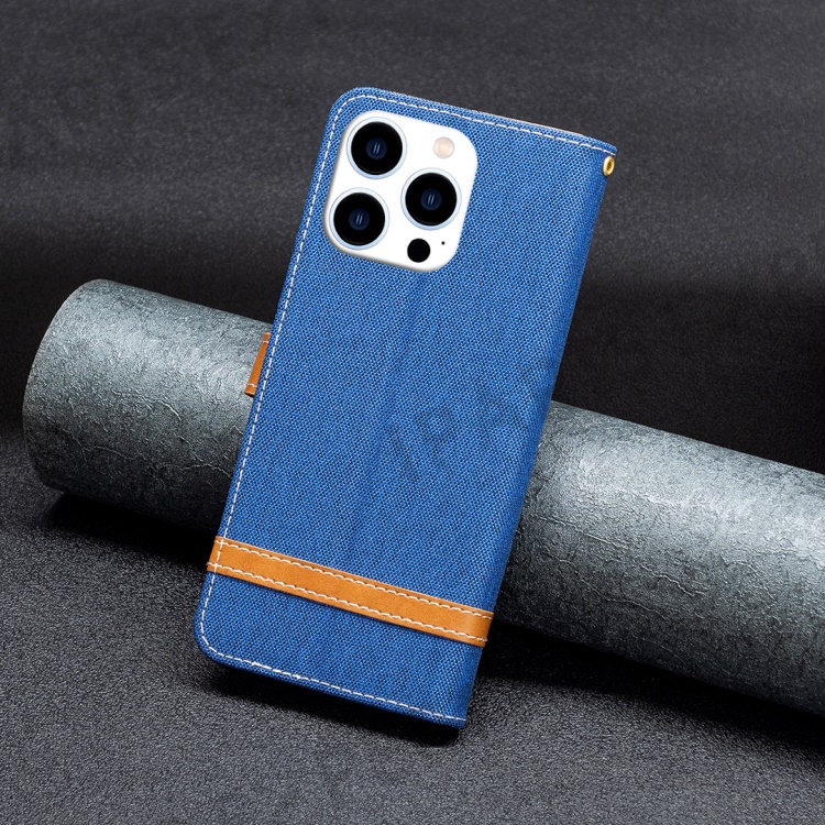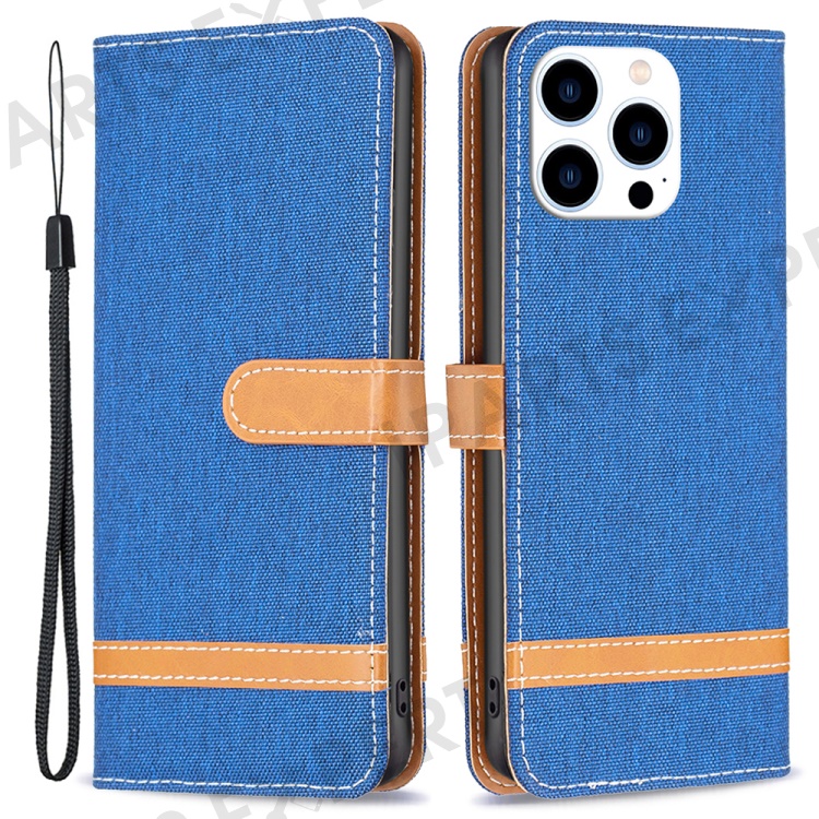 For iPhone 16 Pro Max Case Jeans Cloth Texture Leather Wallet Cover - Sapphire