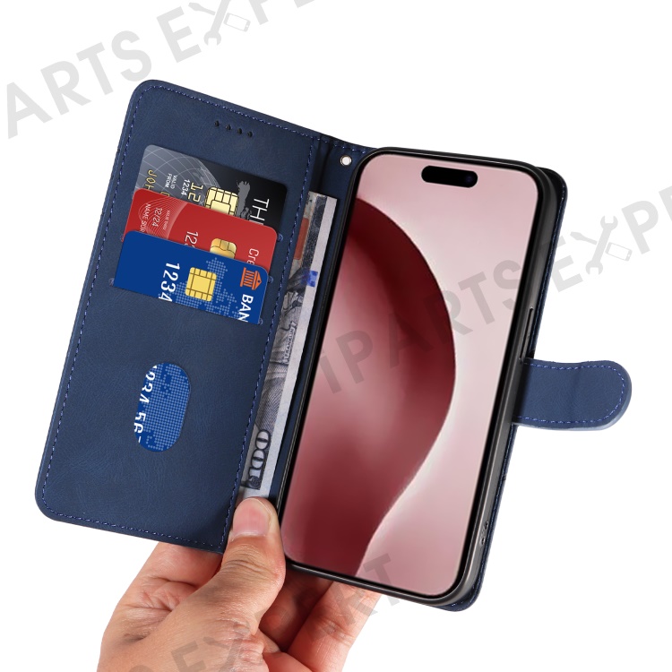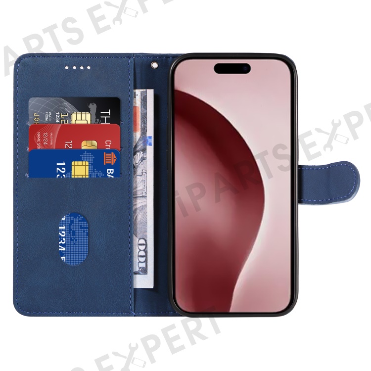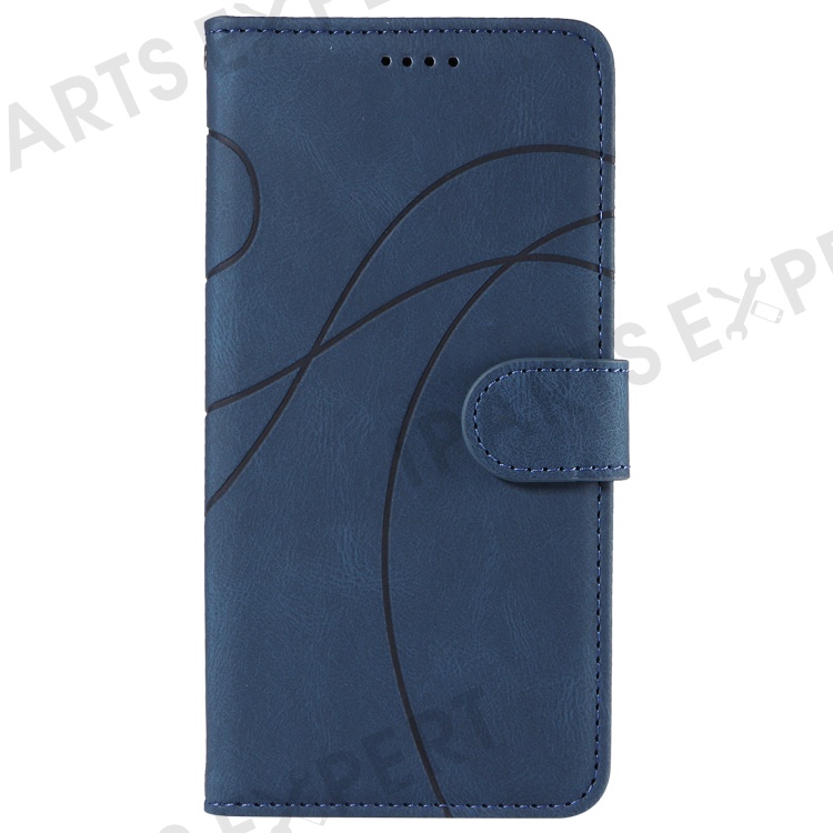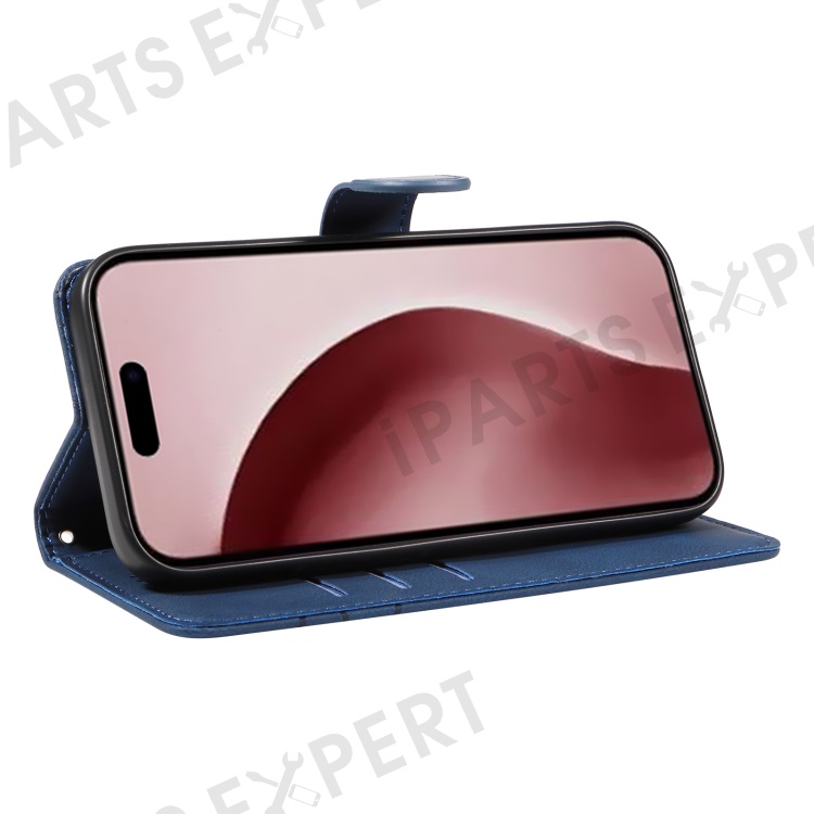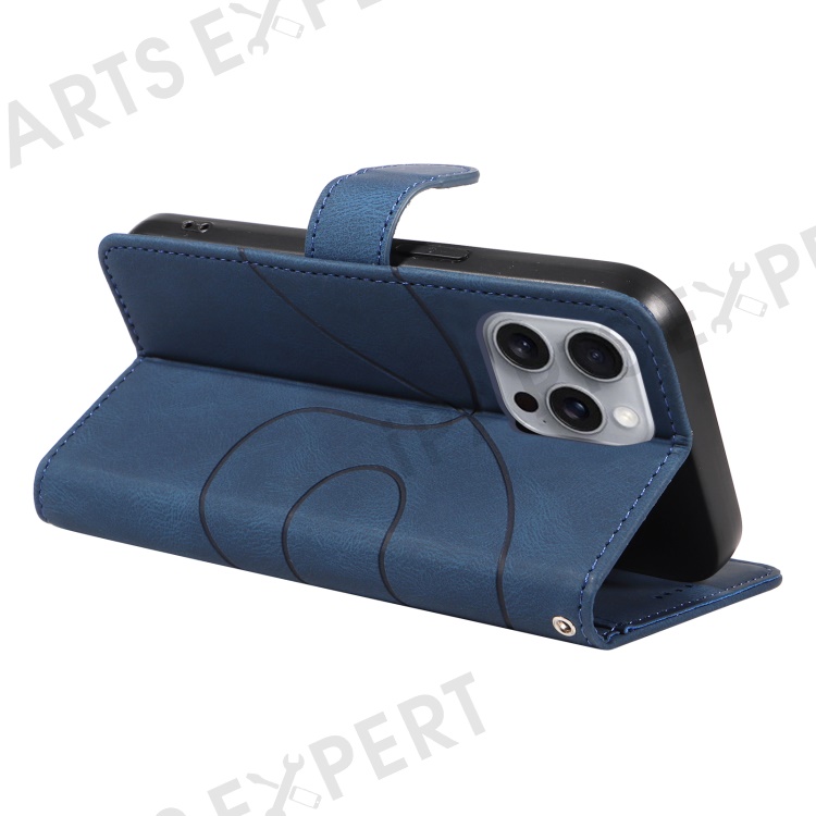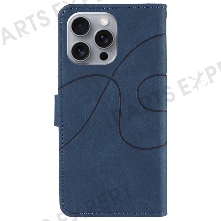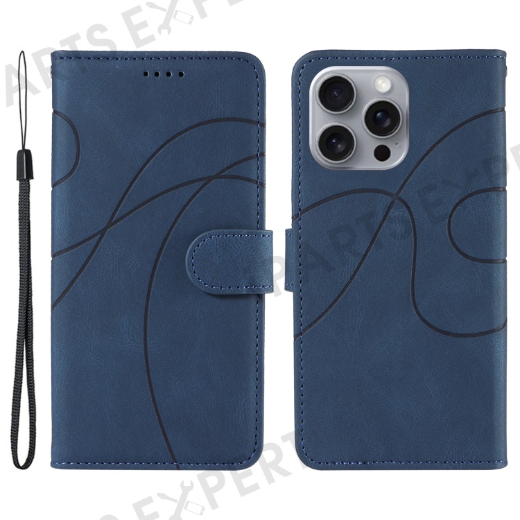 For iPhone 16 Pro Max Case Leather Stand Feature Flip Phone Cover Line Pattern - Blue