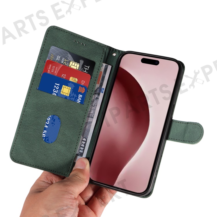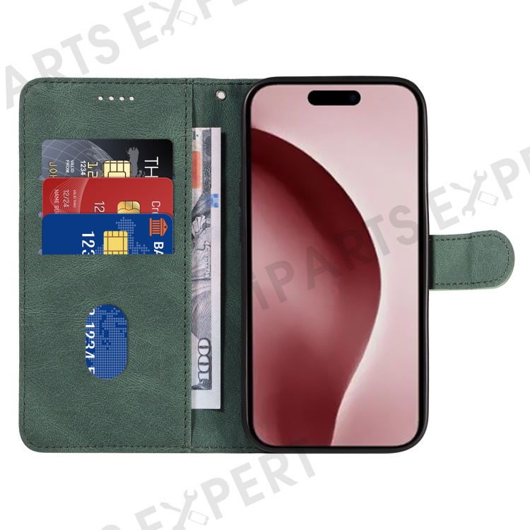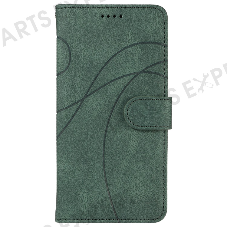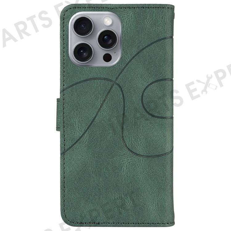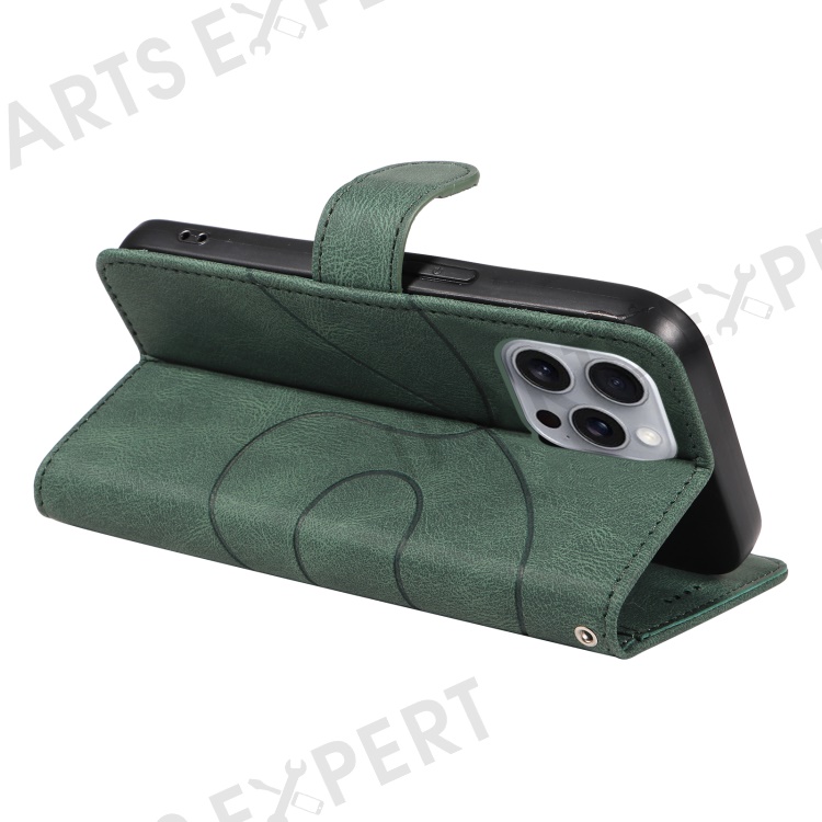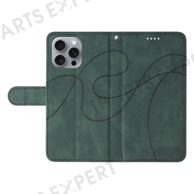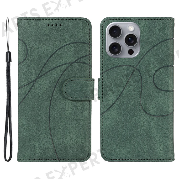 For iPhone 16 Pro Max Case Leather Stand Feature Flip Phone Cover Line Pattern - Green