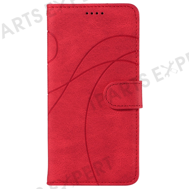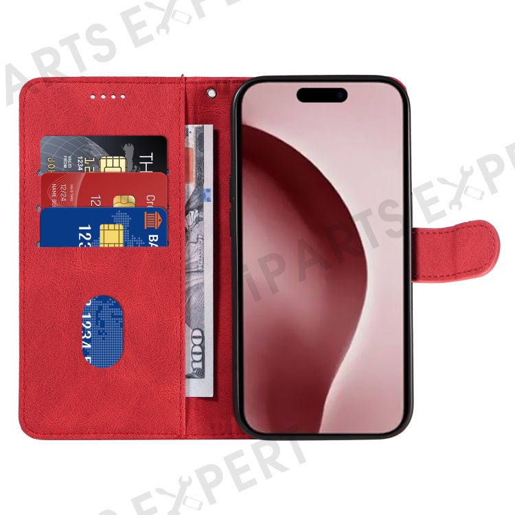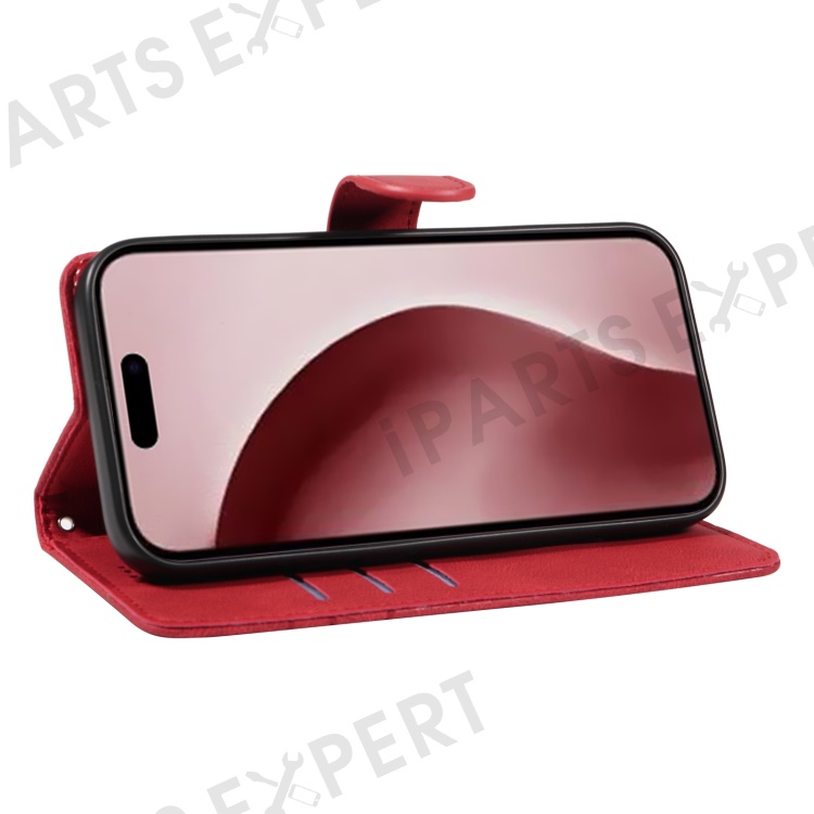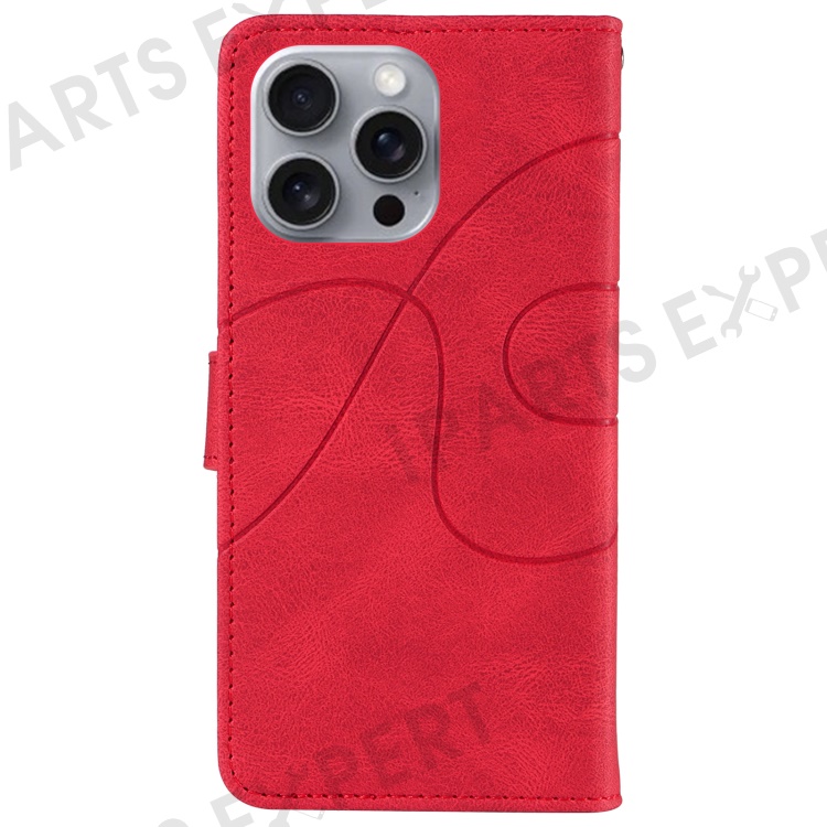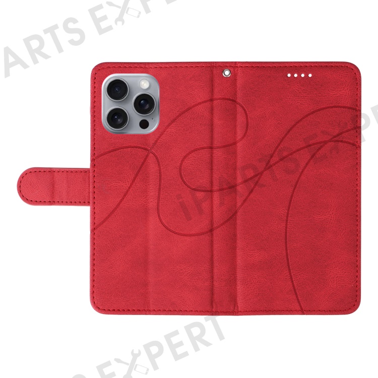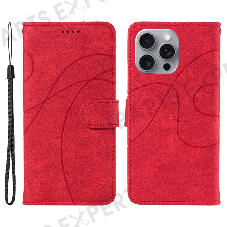For iPhone 16 Pro Max Case Leather Stand Feature Flip Phone Cover Line Pattern - Red