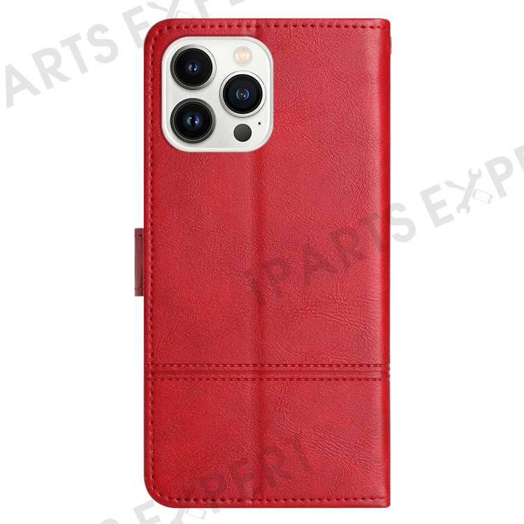 For iPhone 16 Pro Max Case Line Imprinted PU Leather Wallet Phone Cover - Red