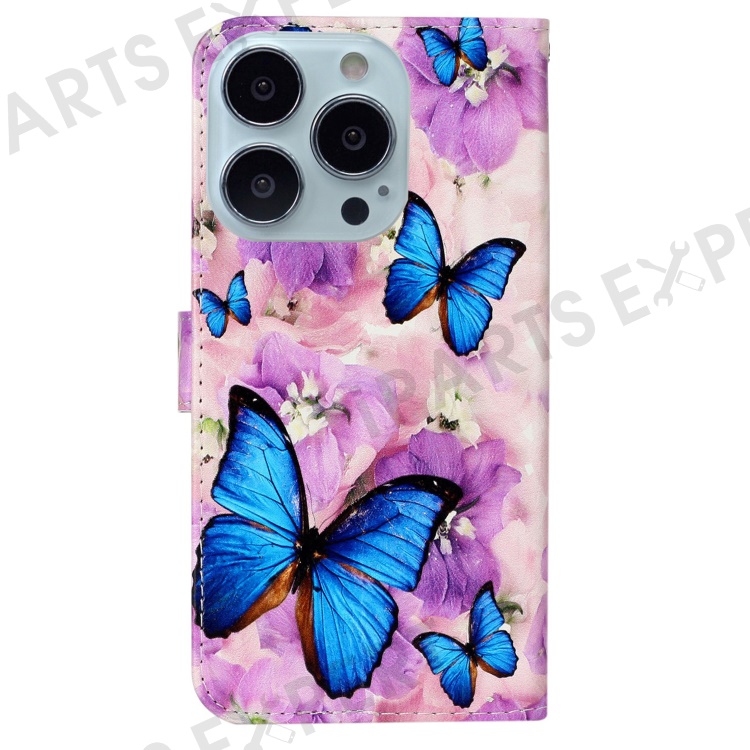 For iPhone 16 Pro Max Case Pattern Printed Leather Phone Cover with Stand 3 Card Holder - Purple Flower Butterfly