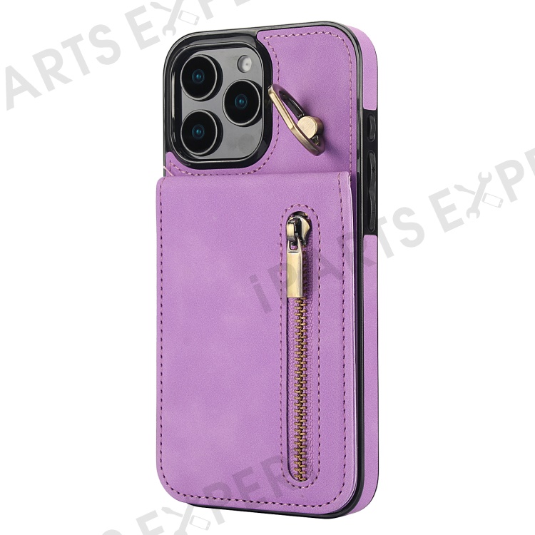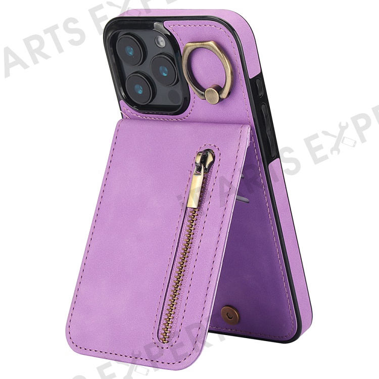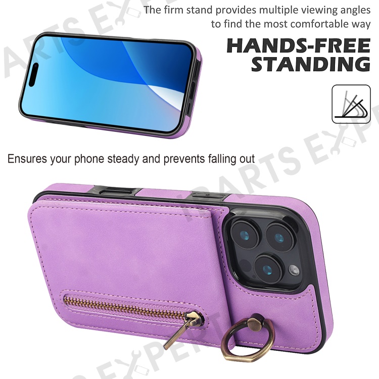 For iPhone 16 Pro Max Case RFID Blocking Ring Kickstand Retro Leather+TPU Anti-fall Phone Cover - Purple