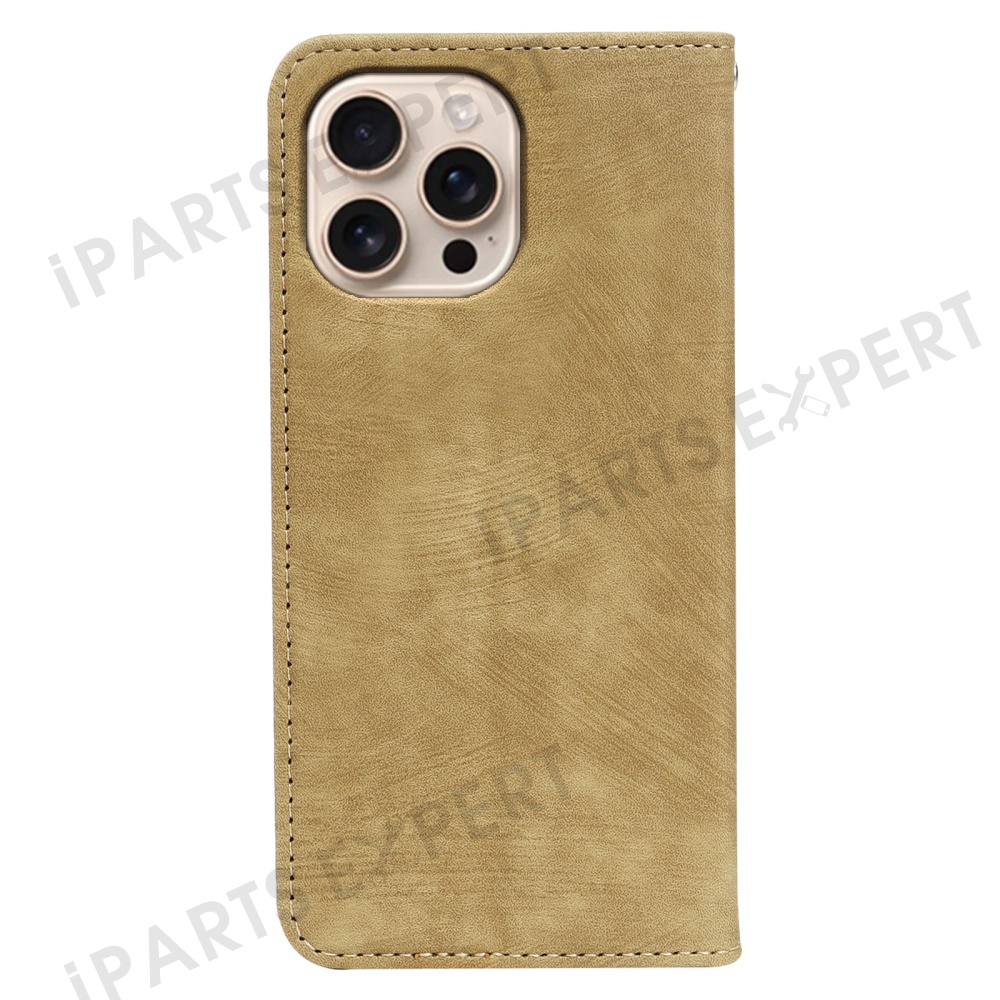 For iPhone 16 Pro Max Case Strong Magnetic Leather Wallet Phone Cover with Striped Texture - Yellow