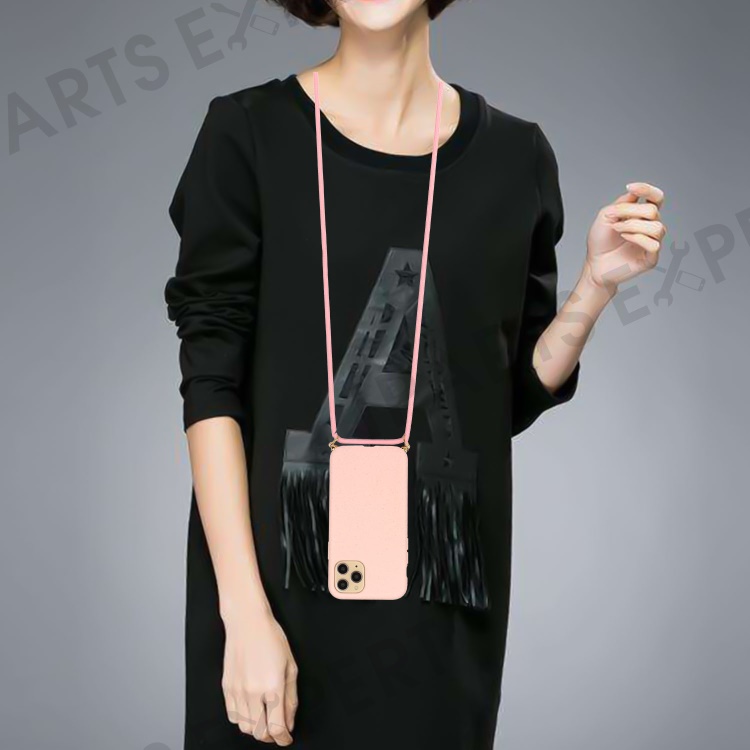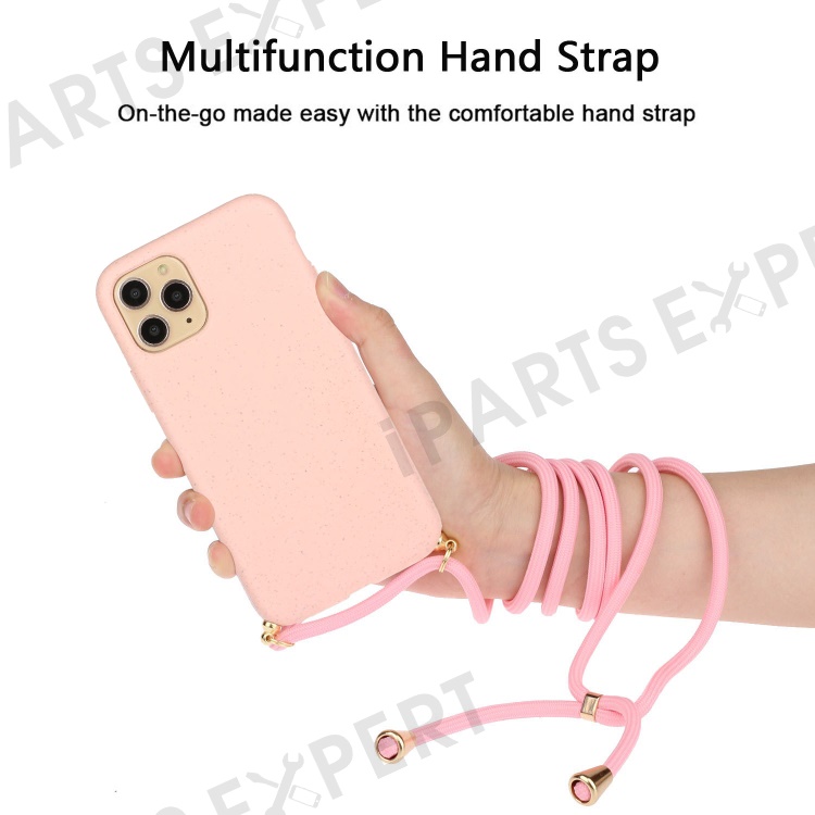 For iPhone 16 Pro Max Case Wheat Straw+TPU Phone Cover with Lanyard Eco Friendly Zero Waste - Pink