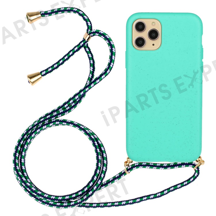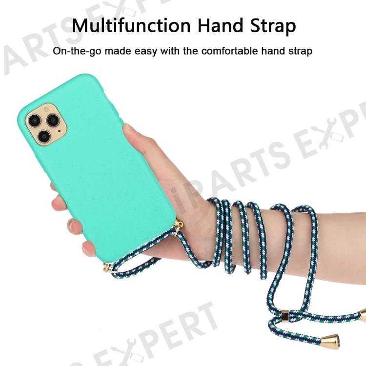 For iPhone 16 Pro Max Case Wheat Straw+TPU Phone Cover with Lanyard Eco Friendly Zero Waste - Sky Blue