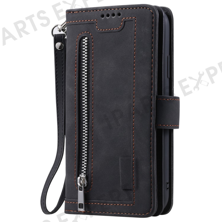 For iPhone 16 Pro Max Case Zipper Pocket 9 Card Slots PU Leather Phone Cover - Black