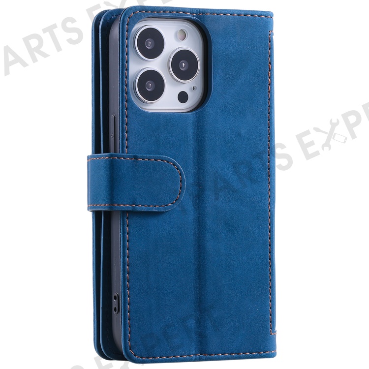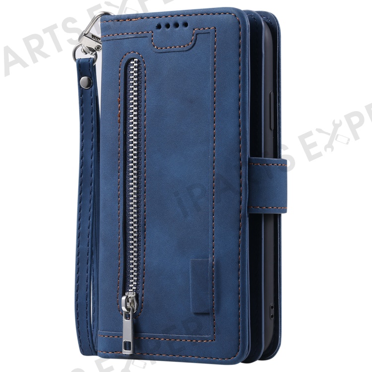 For iPhone 16 Pro Max Case Zipper Pocket 9 Card Slots PU Leather Phone Cover - Blue