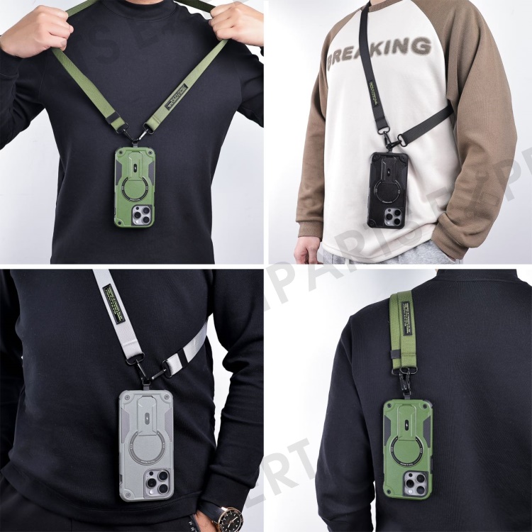 For iPhone 16 Pro Max Case Compatible with MagSafe TPU+PC Kickstand Phone Cover with Strap - Pink