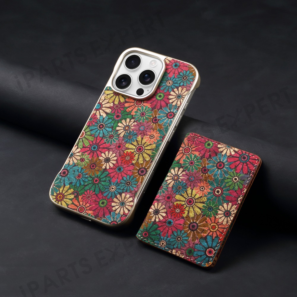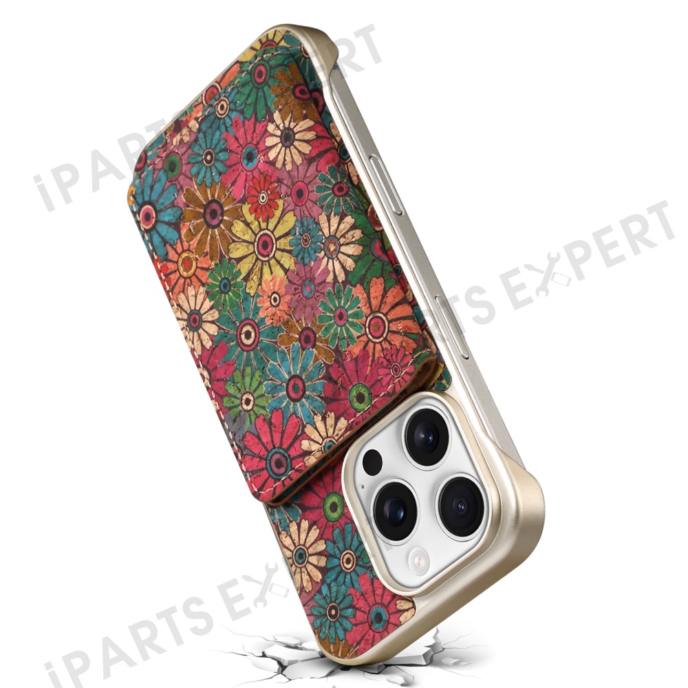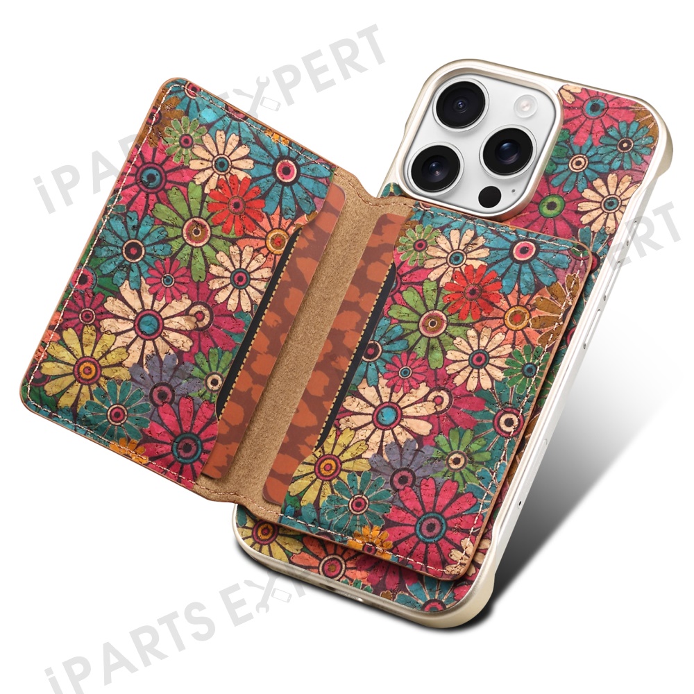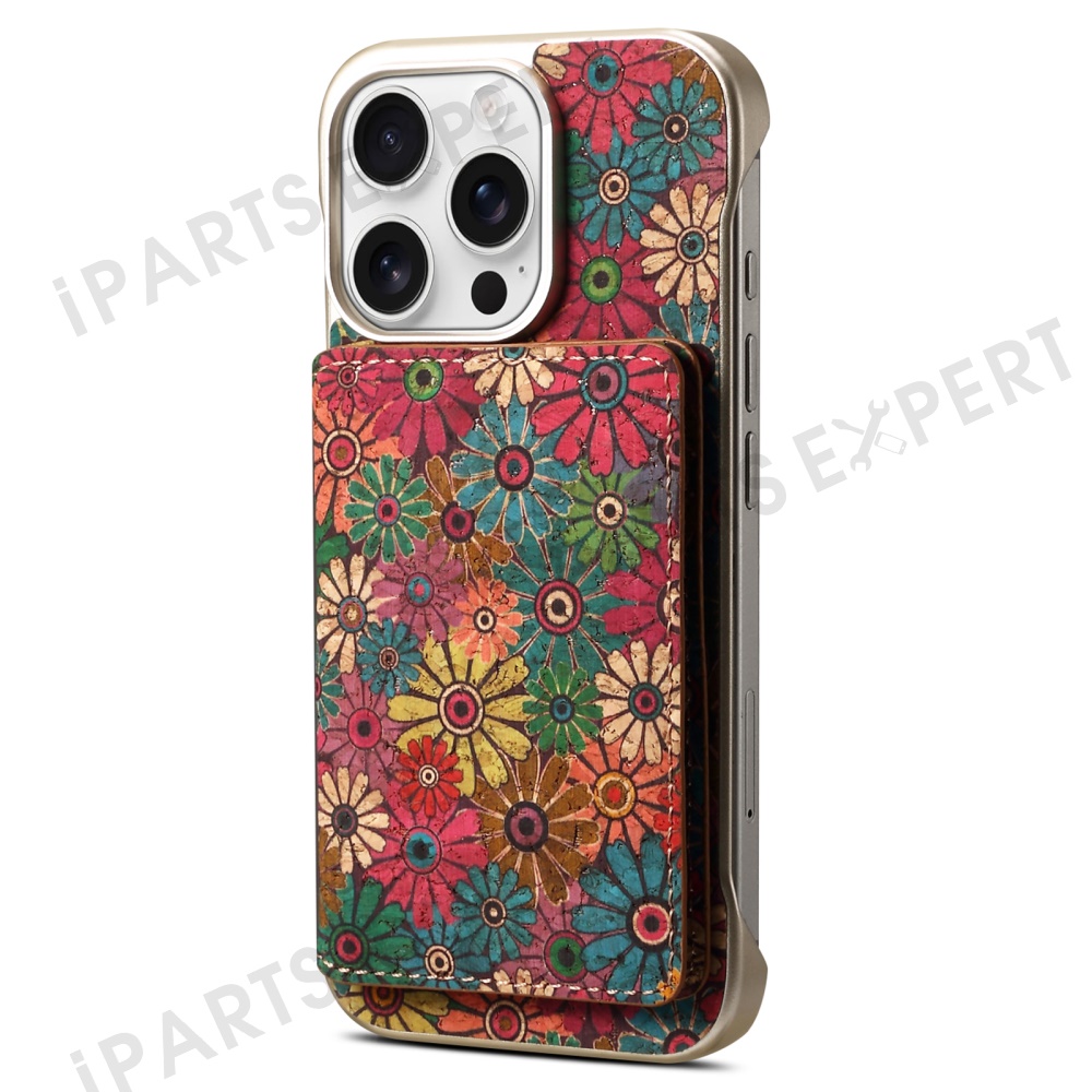 For iPhone 16 Pro Max Magnetic Case Compatible with MagSafe Pattern Print PU + PC Phone Cover with Card Holder - Daisy