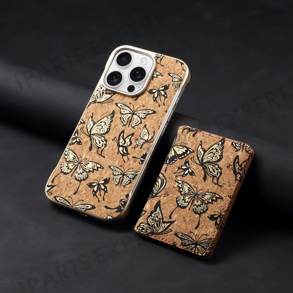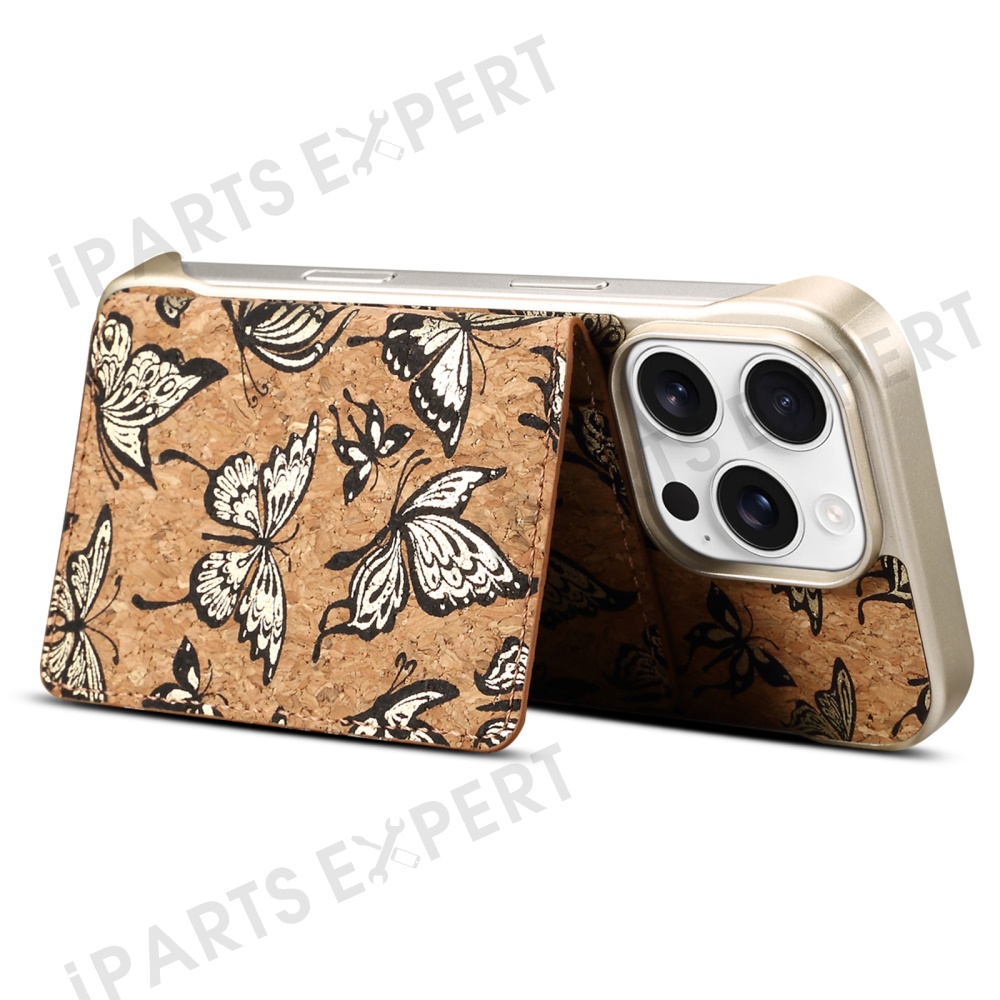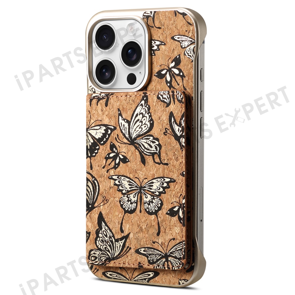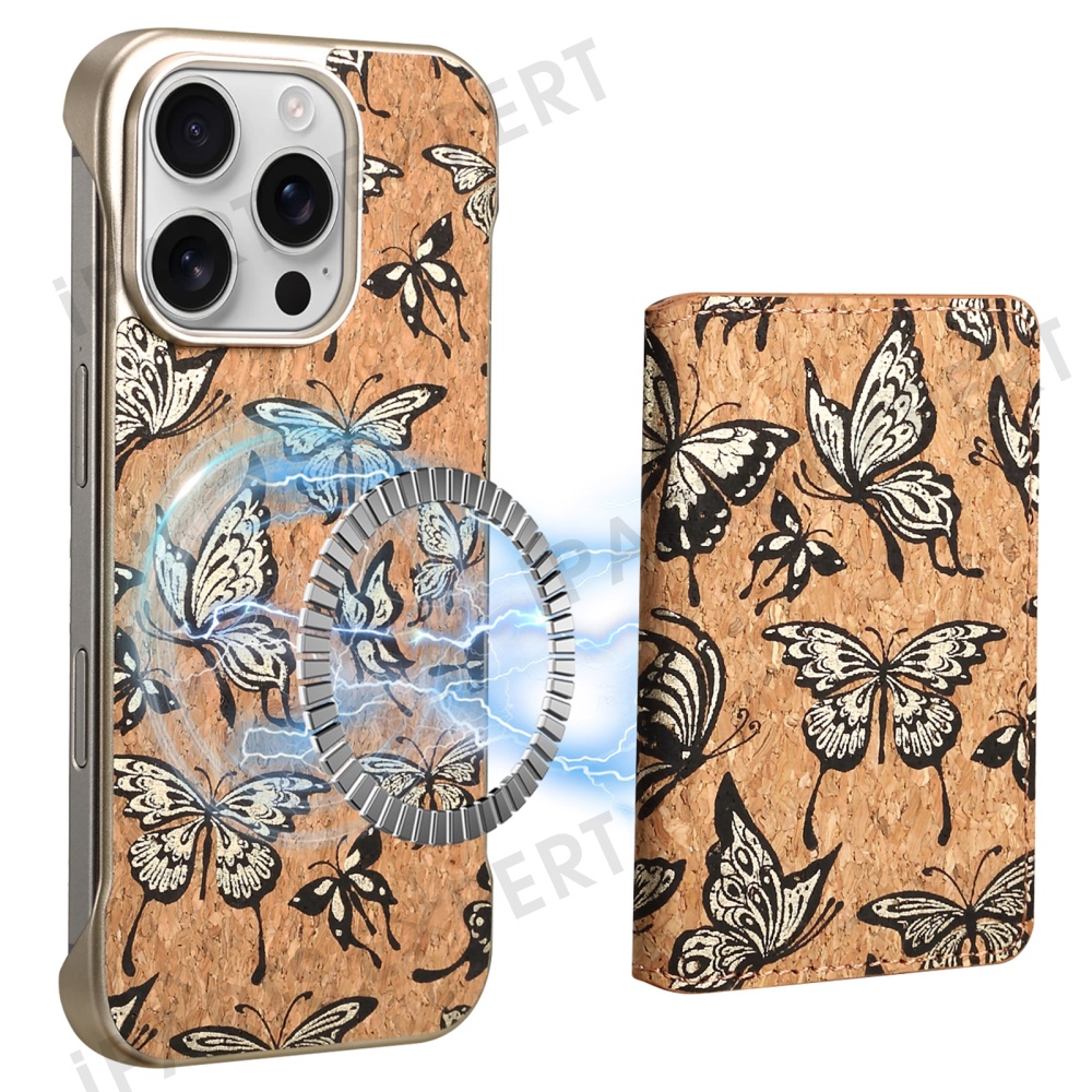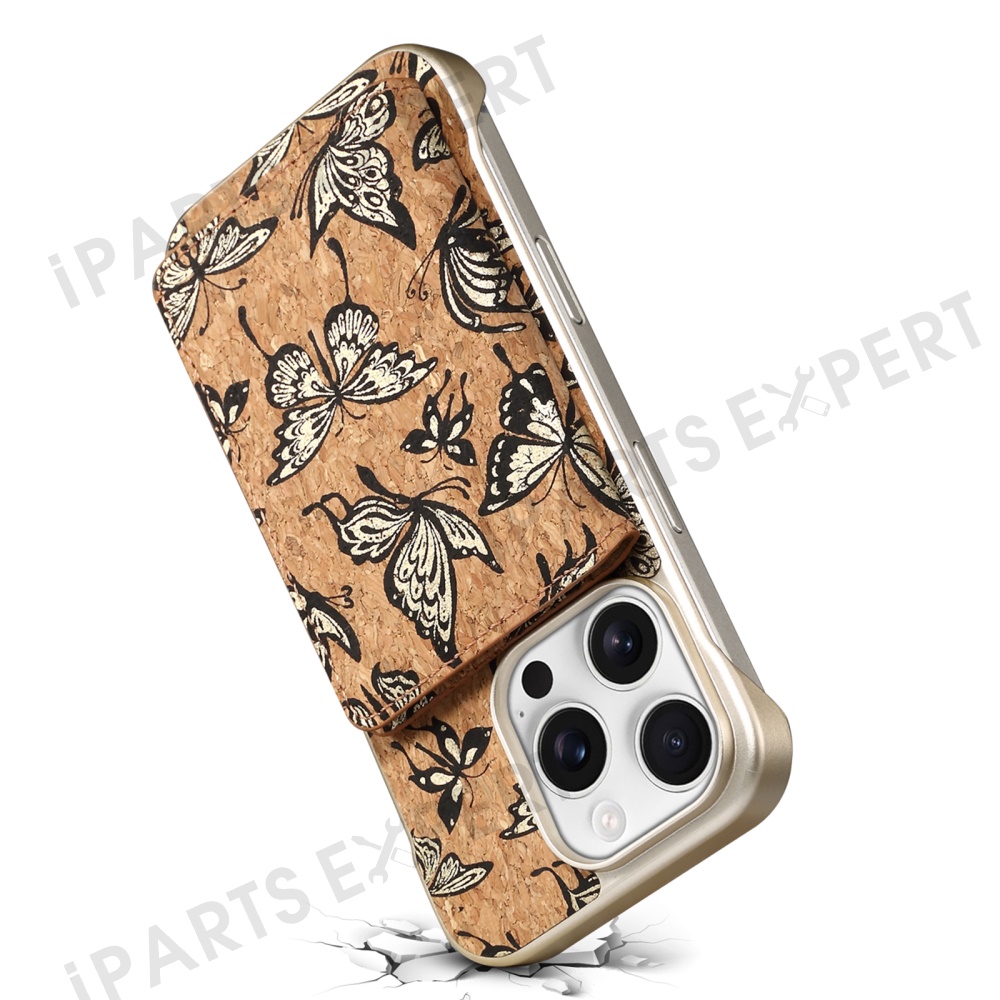 For iPhone 16 Pro Max Magnetic Case Compatible with MagSafe Pattern Print PU + PC Phone Cover with Card Holder - Gold Butterfly