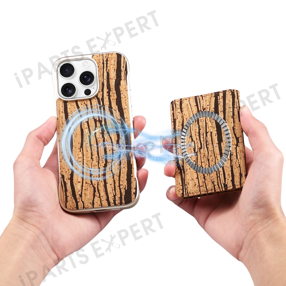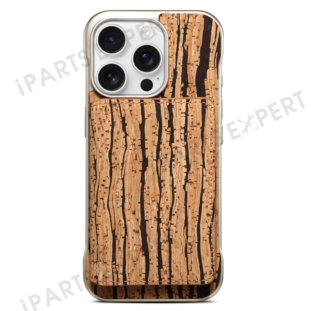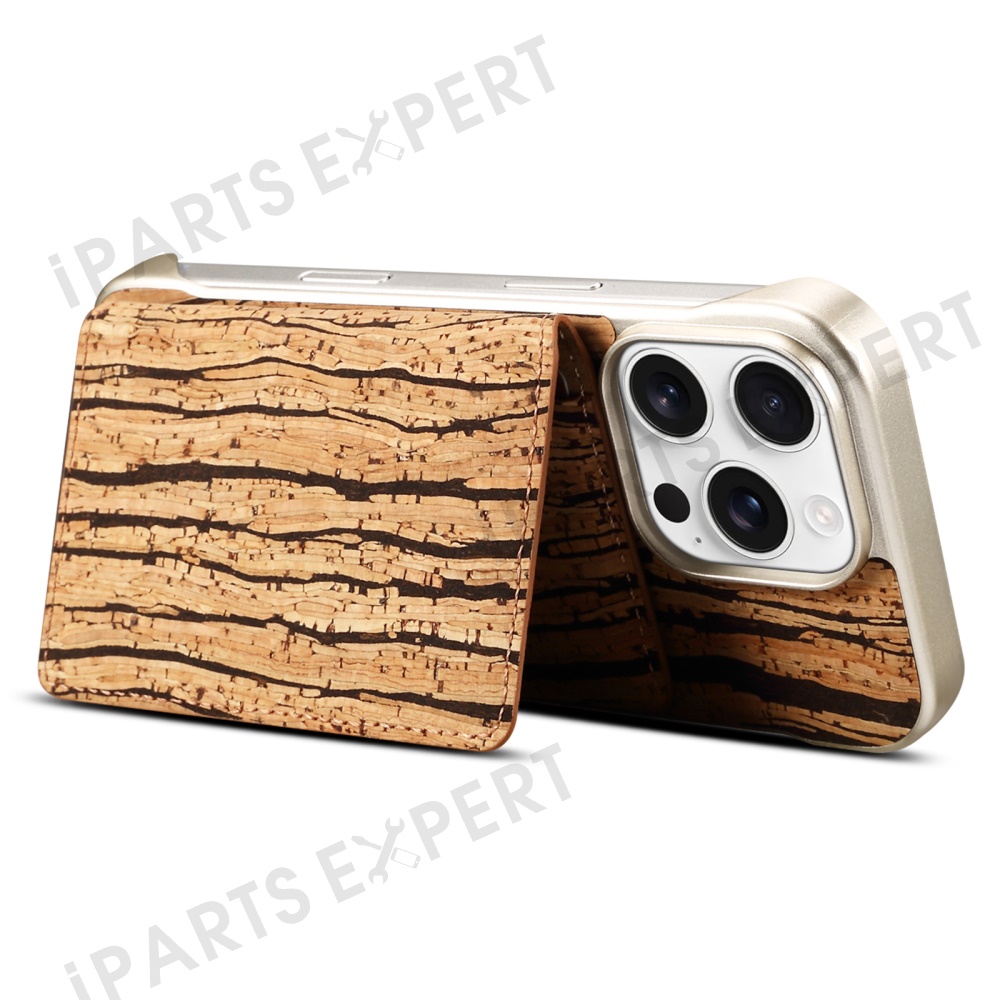 For iPhone 16 Pro Max Magnetic Case Compatible with MagSafe Pattern Print PU + PC Phone Cover with Card Holder - Wood Grain Yellow