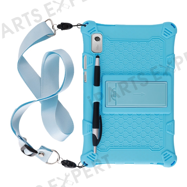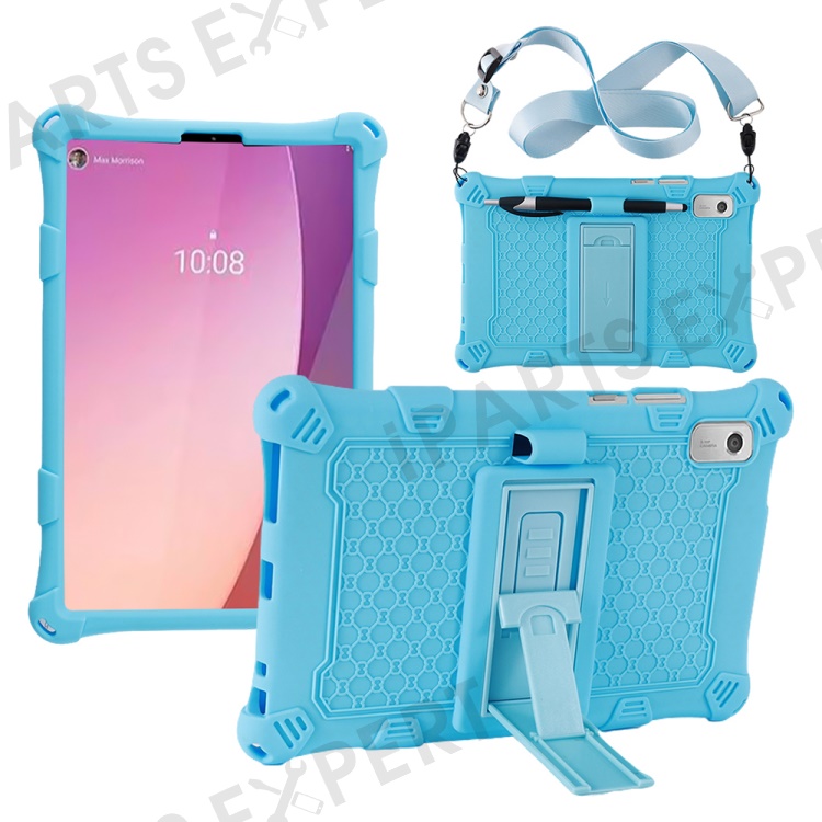 For Lenovo Tab M9 PC + Silicone Shock-Resistant Tablet Case Adjustable Kickstand Cover with Shoulder Strap - Blue