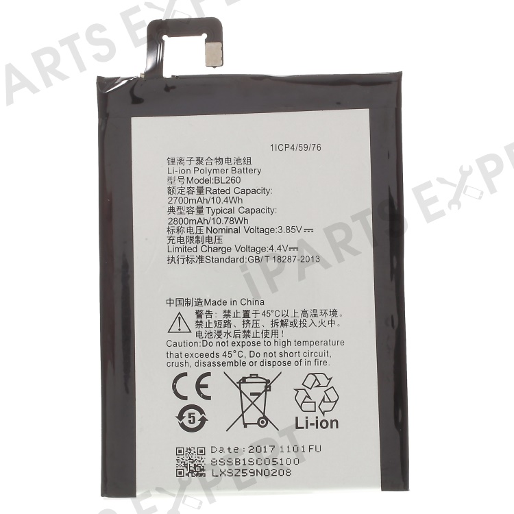 For Lenovo Vibe S1 Lite 3.85V 2800mAh Li-ion Polymer Battery Phone Replacement Part (BL260) (without Logo)