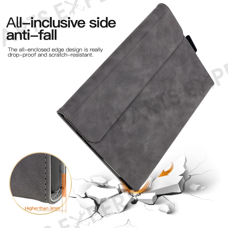 For Microsoft Surface Pro 8 Stand Keyboard Tablet Case Tablet Leather Cover with Pen Loop Holder - Black