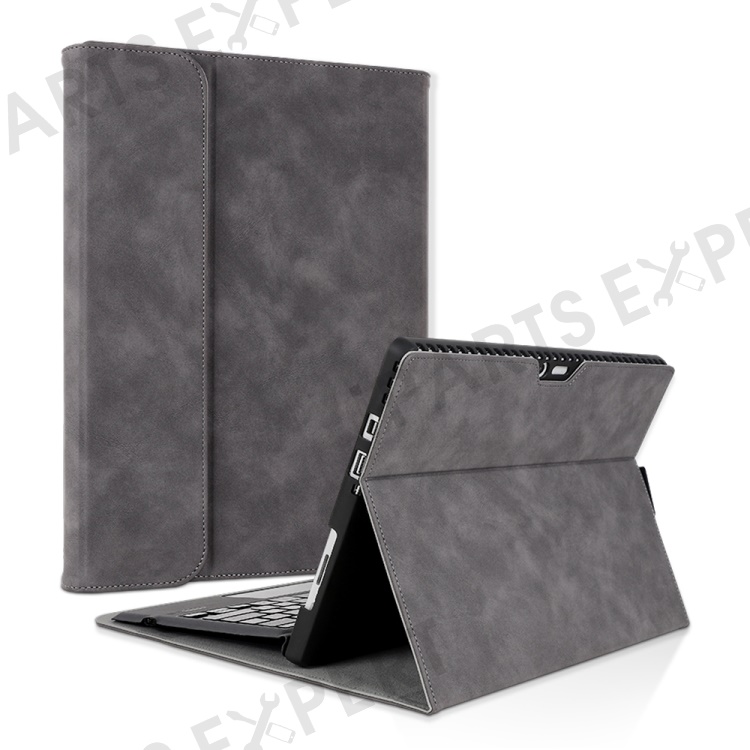 For Microsoft Surface Pro 8 Stand Keyboard Tablet Case Tablet Leather Cover with Pen Loop Holder - Grey