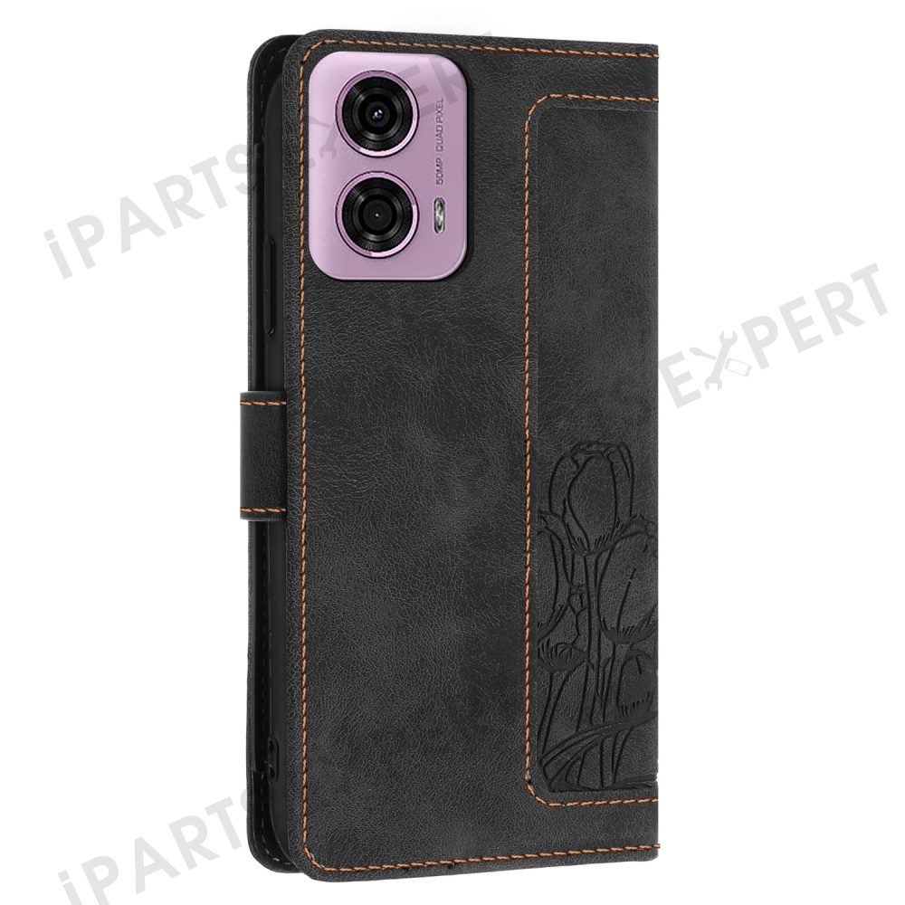 For Motorola Edge (2024) 5G Tulip Leather Case Phone Cover with 5 Card Slots Wallet - Black