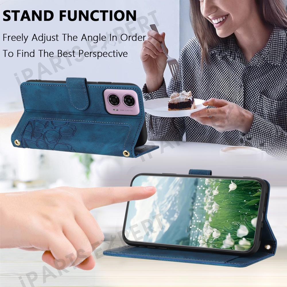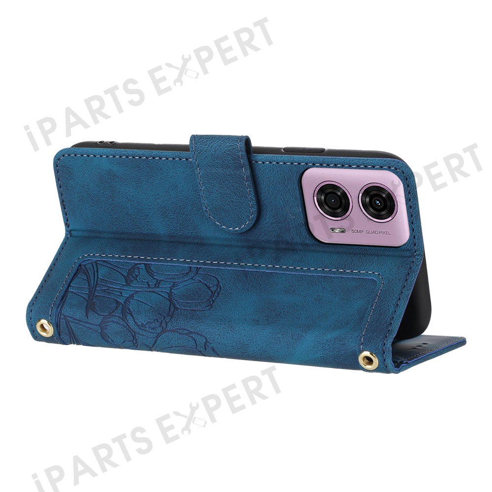 For Motorola Edge (2024) 5G Tulip Leather Case Phone Cover with 5 Card Slots Wallet - Blue