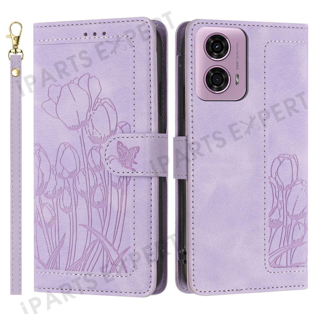 For Motorola Edge (2024) 5G Tulip Leather Case Phone Cover with 5 Card Slots Wallet - Purple