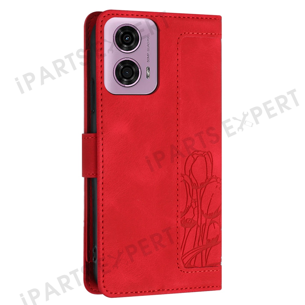 For Motorola Edge (2024) 5G Tulip Leather Case Phone Cover with 5 Card Slots Wallet - Red