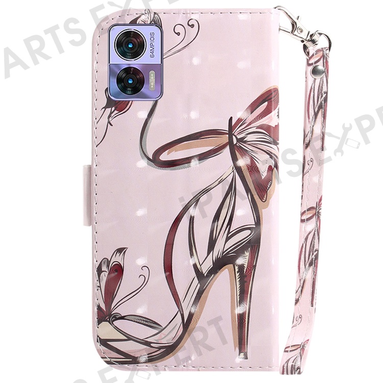 For Motorola Edge 30 Neo 5G / Edge 30 Lite 3D Pattern Printing Leather Flip Phone Case Wallet Stand Magnetic Shockproof Cover with Strap - Butterfly High Heels