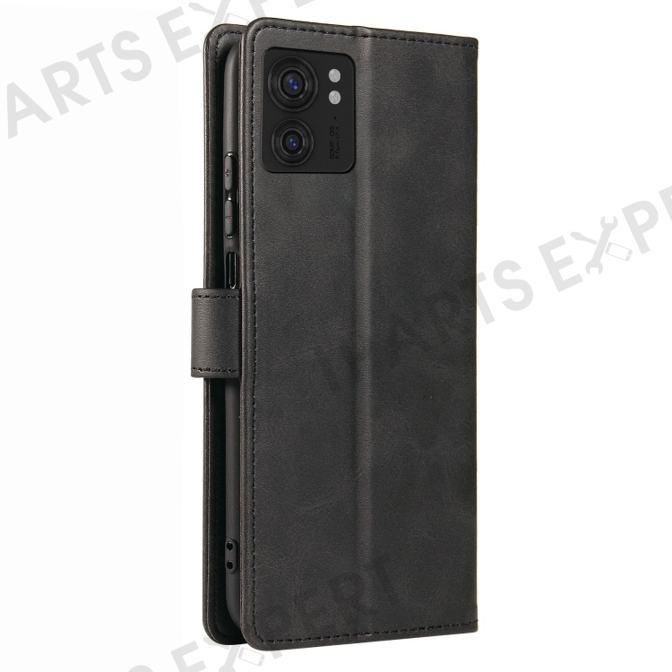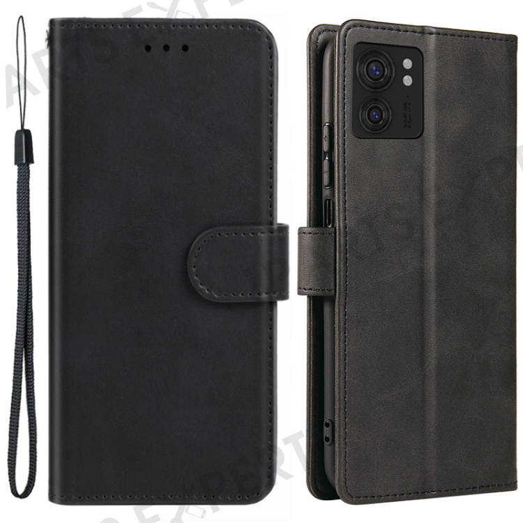 For Motorola Edge 40 5G Leather Phone Wallet Case Calf Texture Stand Phone Cover with Strap - Black
