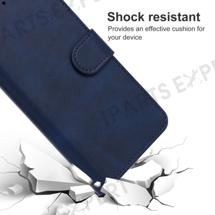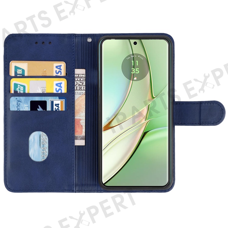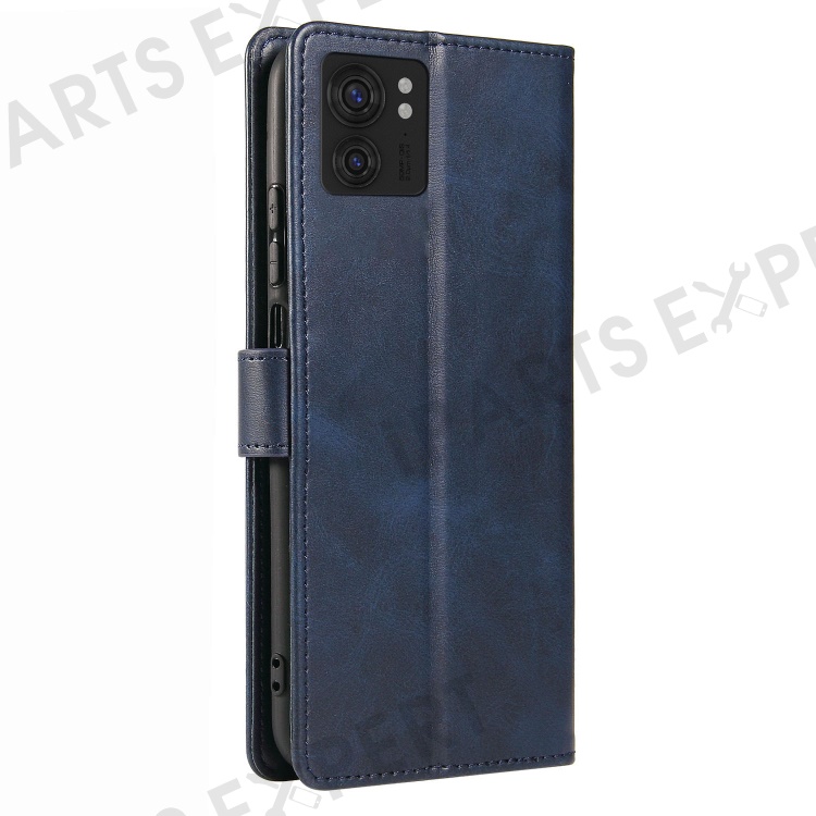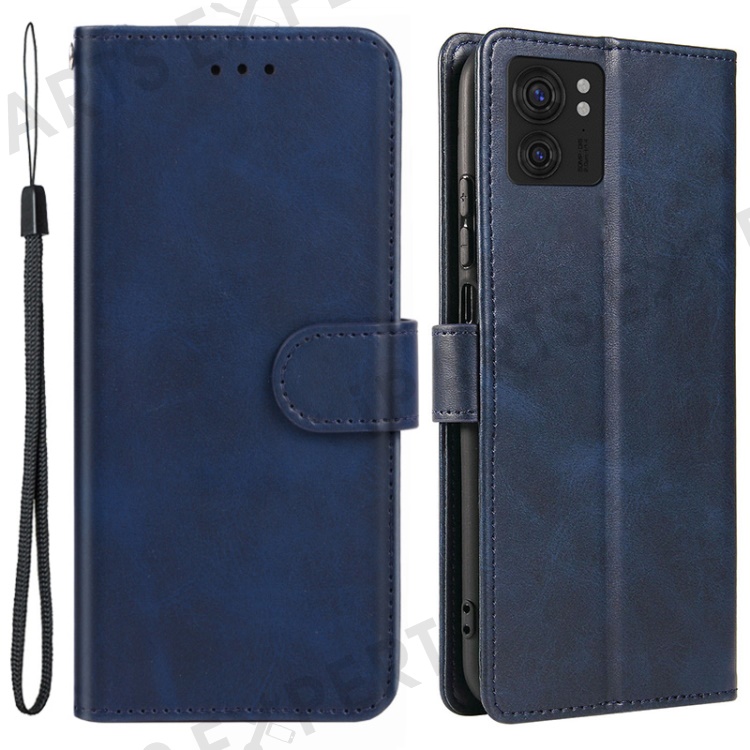 For Motorola Edge 40 5G Leather Phone Wallet Case Calf Texture Stand Phone Cover with Strap - Dark Blue