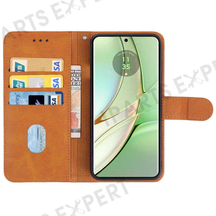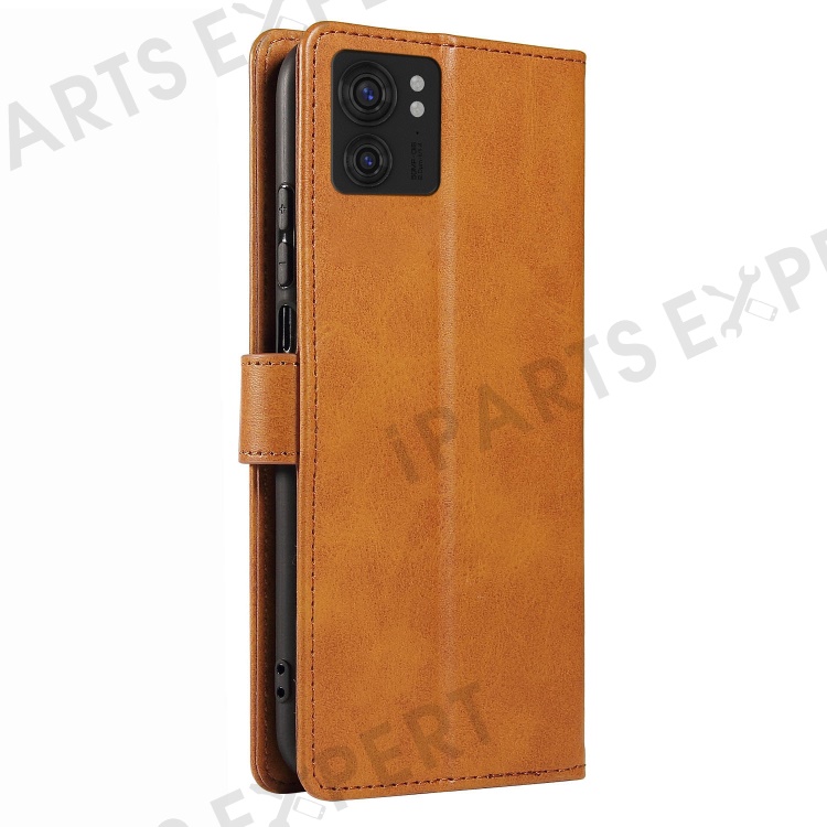 For Motorola Edge 40 5G Leather Phone Wallet Case Calf Texture Stand Phone Cover with Strap - Khaki