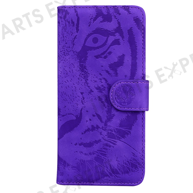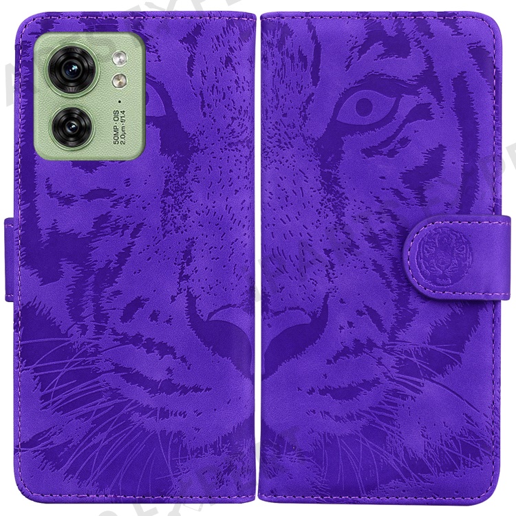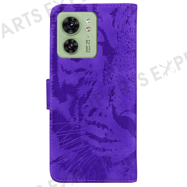 For Motorola Edge 40 5G Stand PU Leather Phone Cover Imprinted Tiger Phone Wallet Case - Purple